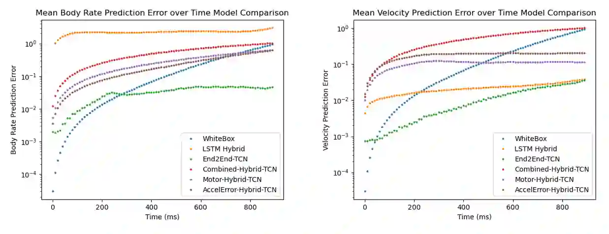 Model-based control methods for robotic systems such as quadrotors, autonomous driving vehicles and flexible manipulators require motion models that generate accurate predictions of complex nonlinear system dynamics over long periods of time. Temporal Convolutional Networks (TCNs) can be adapted to this challenge by formulating multi-step prediction as a sequence-to-sequence modeling problem. We present End2End-TCN: a fully convolutional architecture that integrates future control inputs to compute multi-step motion predictions in one forward pass. We demonstrate the approach with a thorough analysis of TCN performance for the quadrotor modeling task, which includes an investigation of scaling effects and ablation studies. Ultimately, End2End-TCN provides 55% error reduction over the state of the art in multi-step prediction on an aggressive indoor quadrotor flight dataset. The model yields accurate predictions across 90 timestep horizons over a 900 ms interval.