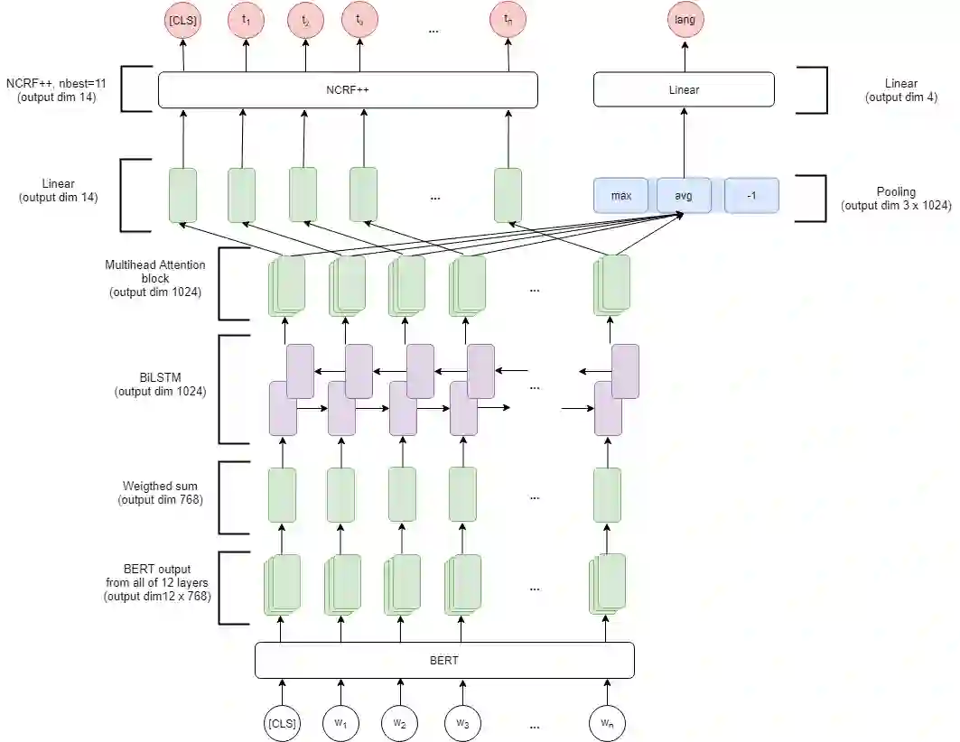 翻译:在本文中,我们处理多语种名称的实体识别任务。我们使用BERT语言模式作为嵌入双向经常性网络、注意力和上方的NCRF的嵌入器。我们只将多语种BERT作为嵌入器,而不作任何微调。我们测试了BSNLP共同任务的数据集模型,该模型由保加利亚、捷克、波兰和俄语文本组成。