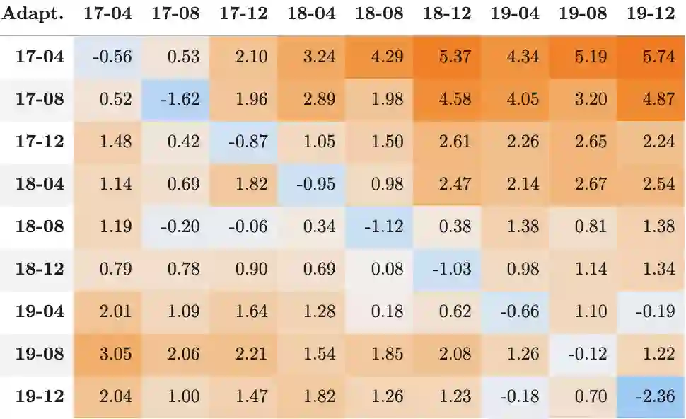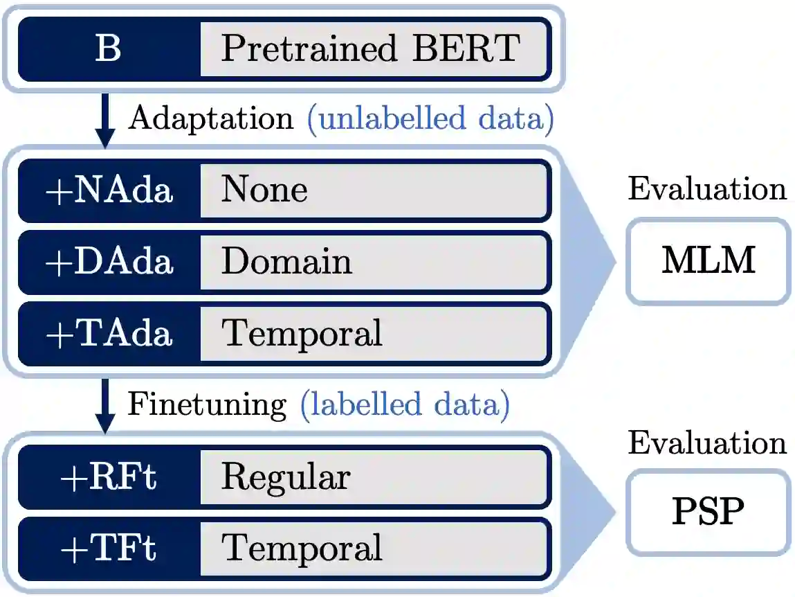 翻译:语言的使用在不同领域之间,甚至在一个域内,语言使用随时间而变化。对于BERT等经过预先培训的语文模型,通过持续培训前的适应表明,通过继续培训进行的领域适应可以提高在下游任务领域的业绩。在本条中,我们调查时间适应是否会带来额外的好处。为此,我们引入了一组在三年内抽样的社交媒体评论。它包含关于上游遮掩语言模拟任务的适应和评价的无标签数据,以及关于下游文件分类任务的微调和评估的标签数据。我们发现,这两项任务的时间性问题:时间适应改善了下游任务的上游和时间微调性能。具体时间性能模型通常比未来测试组运行得更好,这些测试组与热点词的大量使用证据相匹配。然而,对时间和领域进行调整并不能提高下游任务中仅适应域的绩效。当下游任务中的时间性能分析显示,时间适应能捕捉到由事件引起的变化,但与任务性能实际相关的变化并不重要。根据我们的研究结果,我们讨论时间适应可能更加有效的时候。