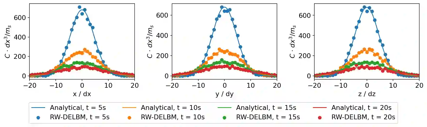 Solute transport in fluid-particle systems is a fundamental process in numerous scientific and engineering disciplines. The simulation of it necessitates the consideration of solid particles with intricate shapes and sizes. To address this challenge, this study proposes the Random-Walk Metaball-Imaging Discrete Element Lattice Boltzmann Method (RW-MI-DELBM). In this model, we reconstruct particle geometries with the Metaball-Imaging algorithm, capture the particle behavior using the Discrete Element Method (DEM), simulate fluid behavior by the Lattice Boltzmann Method (LBM), and represent solute behavior through the Random Walk Method (RWM). Through the integration of these techniques with specially designed boundary conditions, we achieve to simulate the solute transport in fluid-particle systems comprising complex particle morphologies. Thorough validations, including analytical soluutions and experiments, are performed to assess the robustness and accuracy of this framework. The results demonstrate that the proposed framework can accurately capture the complex dynamics of solute transport under strict mass conservation. In particular, an investigation is carried out to assess the influence of particle morphologies on solute transport in a 3D oscillator, with a focus on identifying correlations between shape features and dispersion coefficients. Notably, all selected shape features exhibited strong correlations with the dispersion coefficient, indicating the significant influence of particle shapes on transport phenomena. However, due to the complexity of the relationship and the limited number of simulations, no clear patterns could be observed. Further comprehensive analyses incorporating a broader range of shape features and varying conditions are necessary to fully comprehend their collective influence on the dispersion coefficient.