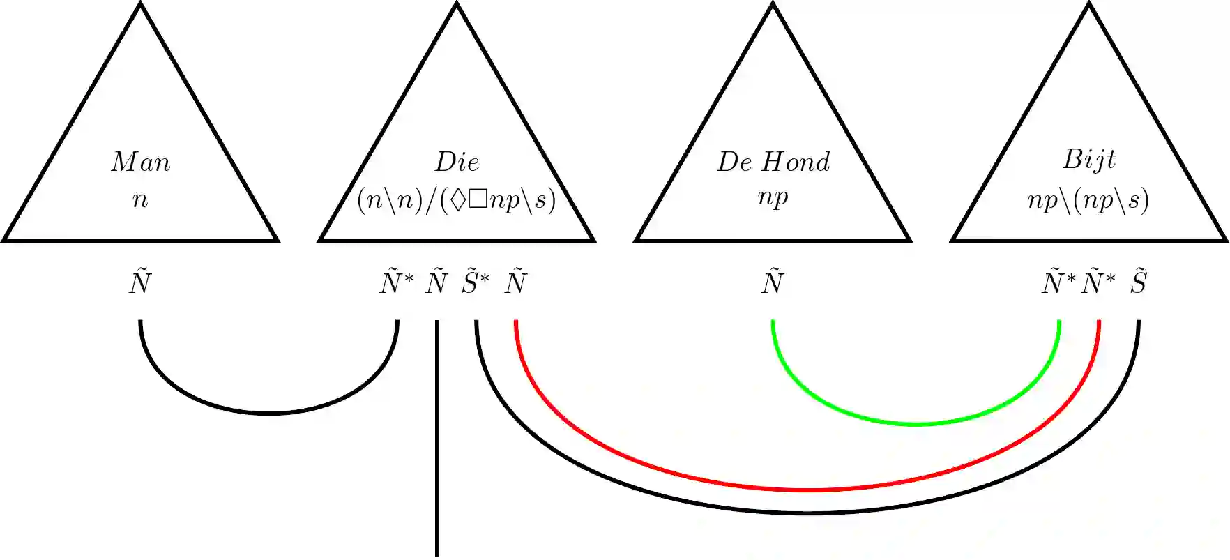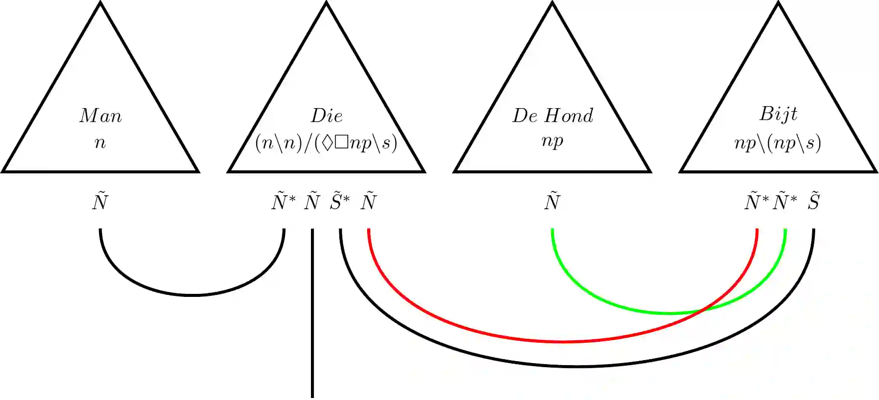 翻译:计算语言中目前使用的Lambek Calculus 扩展版本依赖于单数模式, 以便控制地应用影响文字顺序和短语结构的结构规则。 这些受控制的结构性操作产生衍生的模糊性, 最初的Lambek Calculus 或其前组简化则忽略了这些模糊性。 对FVect 和线形地图等紧紧闭类的扩展 Lambek Calculus 提出了组成解释建议, 但在这些提案中, 语法- 语法绘图忽略了控制模式, 有效地将其作用限制在语法中。 我们的目标是将模式变成矢量解释的第一等公民。 在方向密度矩阵语义的基础上, 我们扩展了对类型系统的解释, 并增加了一个额外的旋转密度矩阵空间。 然后对证据的解释导致模糊性衍生物与正弦形旋转状态同时代表对模糊性现有解释的方法, 并为词法和引言法的模糊性整合提供了统一的框架 。