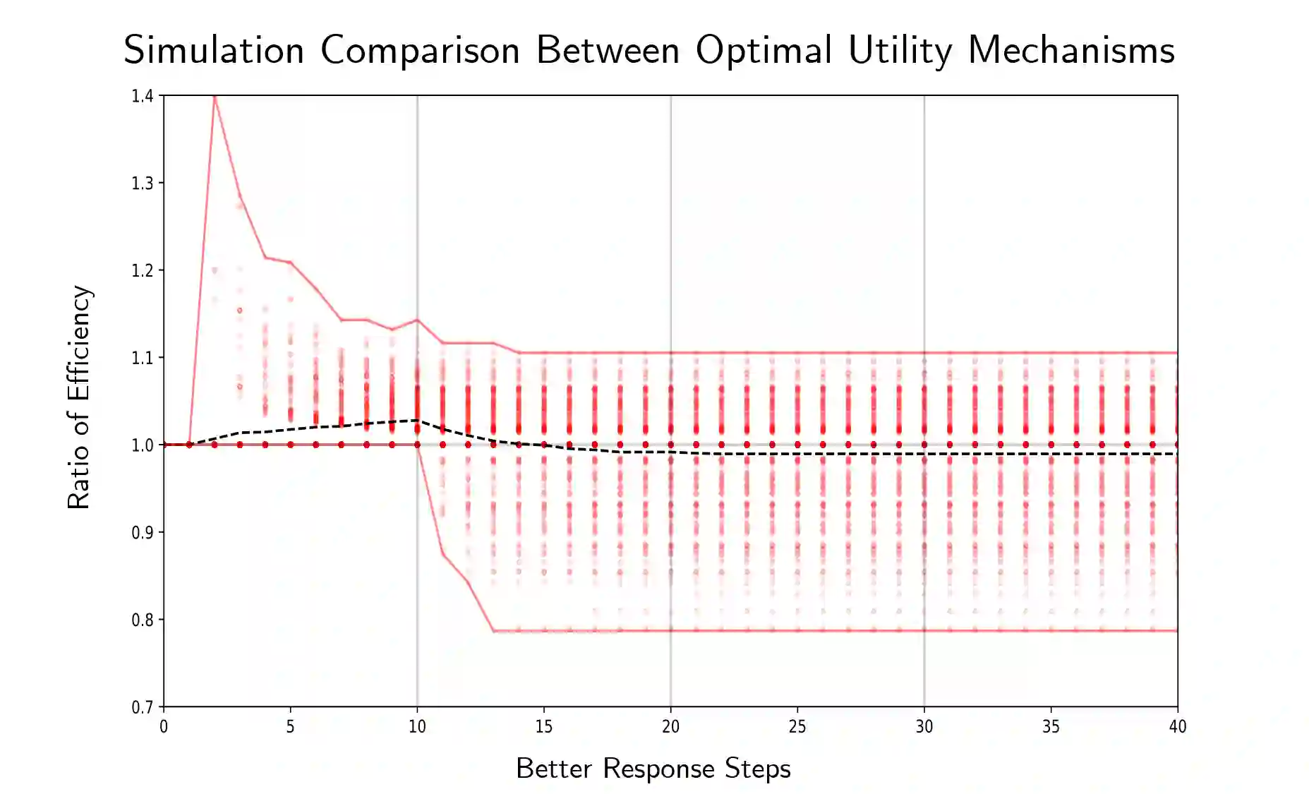 翻译:游戏理论方法作为设计分布式本地算法的稳健方法获得了牵引力,这些算法在多试剂环境中产生了理想的整体系统配置。然而,这些方法的很多重点是为代理器网络的运行提供无线保障,在沿这些分布式算法的瞬态研究效率保障方面存在差距。因此,在本文中,我们研究了一套套装游戏中自然游戏理论算法的短暂效率保障,这些算法被用于模拟各种应用。我们的主要结果体现了在自然动态的瞬态中最大限度地实现保证效率的最佳实用设计。此外,我们把Pareto-optimal边疆定性为在一种游戏理论设计类别下保证效率。令人惊讶的是,我们发现长期和短期的保证存在着一种极端的权衡,即一种尽可能最佳的游戏理论设计在瞬变中会产生任意的坏处。