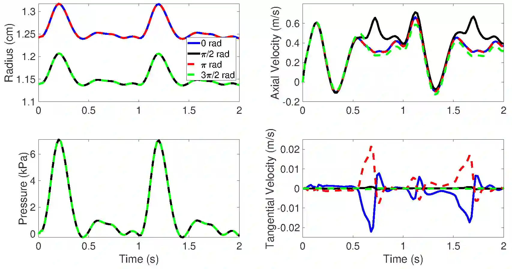 翻译:该模型由一套平衡法体系组成,用于保护质量,平衡轴向和角方向的势头。这些方程式是通过对狭窄、大型船只的压抑性纳维埃-斯托克斯方程式进行无症状分析,并在每一横截面的射线方向进行整合而得出的。对该系统的主要特性进行了讨论,并提出了一种相对性 -- -- 保留良好平衡的中上风方案。该方法的优点将在各种情景中进行测试。特别是,展示了使用理想化动脉模型进行模拟的数值结果。我们分析了血液流动在不同初始条件下的时间演变,例如,在轮廓的扰动到稳定状态时,形成船只壁上的挤动。我们考虑了不同情况,因为船只弹性的变化不同。
