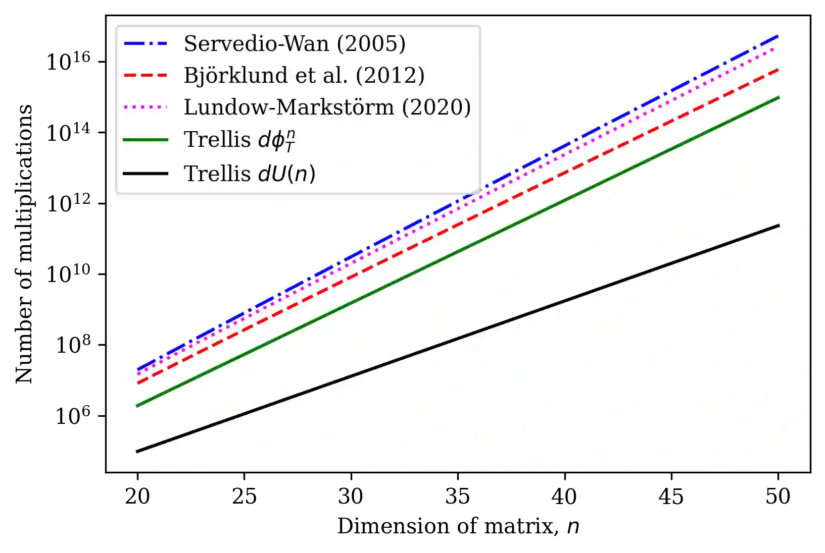 翻译:自 Ryser (1963年) 和 Valiant (1979年) 的工作以来,计算一个永久矩阵的问题引起了人们的兴趣。 另一方面,自1960年代以来,在编码理论中广泛研究了tellises。 在这项工作中,我们建立了两个域之间的连接。 我们引入了代表所有变式的cancial tellisils $T_n美元。 并显示, 以美元计算一个固定的美元矩阵的永久( 美元) $A美元可以作为这个tellisils 的流流。 在某种常规情况下, 以tellism 为基础的方法比已知的精确方法少一点操作。 此外, 如果 $A 已经设置了 美元, 那么美元 美元 美元 美元, 那么美元 美元 美元 则可以自动计算 。 当我们用trecial_ dicentral discreal discrives 时, 我们用一个已知的treal- discreal discrivers a ral rivers a translations dremod.