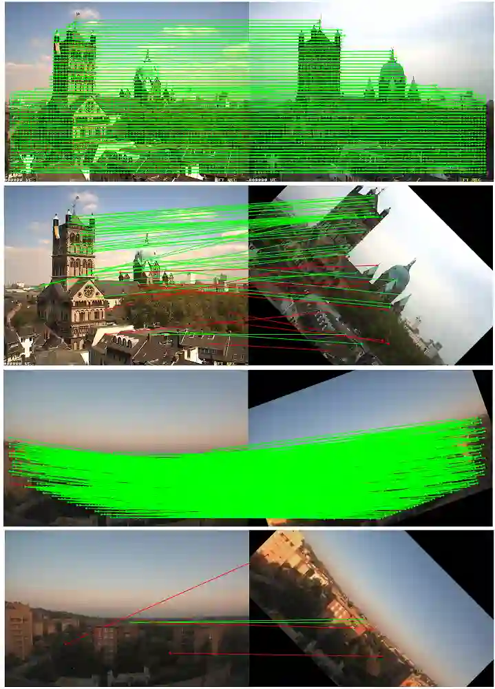 翻译:本文的目的是要表明,只要用可控的CNN取代主干线CNN,就可以使最先进的地物匹配器(LOFTR)更能适应轮值。 它与翻译和图像旋转等同。 实验性地显示,这种提升的取得并没有降低普通照明和视觉匹配序列的性能。