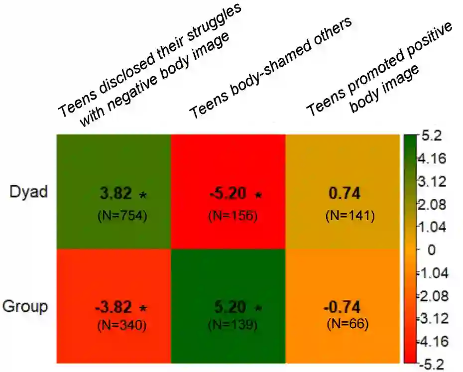翻译:我们分析了来自67名青少年(年龄13-17岁)的451段Instagram私信对话中的1,596个子对话,这些青少年在Instagram上参与了关于身体意象的私下讨论。研究发现,当青少年分享负面身体意象困扰时通常会获得支持,参与身体羞辱时会共同进行批评,而倡导积极身体意象时会得到赞赏。此外,这类自我表露与回应方式会因对话是一对一还是群组形式而存在差异。我们发现,分享困扰与获得支持最常发生在一对一对话中,而身体羞辱与负面互动则多出现在群组场景中。本研究的一个关键发现是:社交媒体私密环境会显著影响青少年讨论和回应身体意象的方式。基于这些发现,我们为社交媒体平台提出了设计建议,以促进围绕身体意象的积极互动,最终为关注身体意象问题的青少年创造更健康、更具支持性的网络环境。