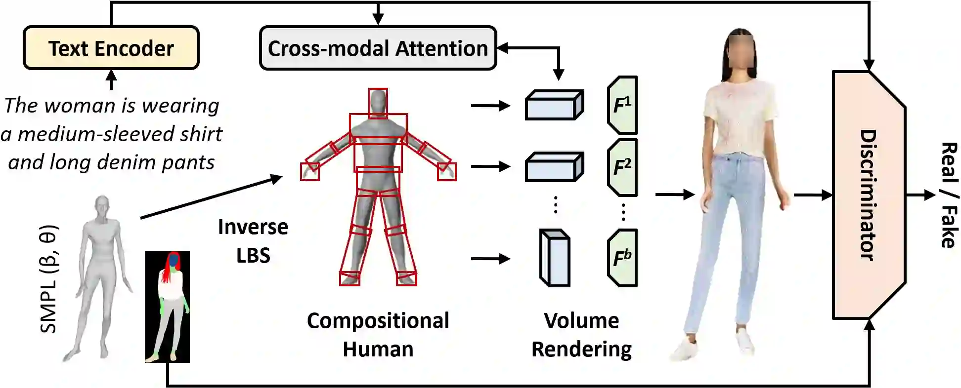 3D human modeling has been widely used for engaging interaction in gaming, film, and animation. The customization of these characters is crucial for creativity and scalability, which highlights the importance of controllability. In this work, we introduce Text-guided 3D Human Generation (\texttt{T3H}), where a model is to generate a 3D human, guided by the fashion description. There are two goals: 1) the 3D human should render articulately, and 2) its outfit is controlled by the given text. To address this \texttt{T3H} task, we propose Compositional Cross-modal Human (CCH). CCH adopts cross-modal attention to fuse compositional human rendering with the extracted fashion semantics. Each human body part perceives relevant textual guidance as its visual patterns. We incorporate the human prior and semantic discrimination to enhance 3D geometry transformation and fine-grained consistency, enabling it to learn from 2D collections for data efficiency. We conduct evaluations on DeepFashion and SHHQ with diverse fashion attributes covering the shape, fabric, and color of upper and lower clothing. Extensive experiments demonstrate that CCH achieves superior results for \texttt{T3H} with high efficiency.