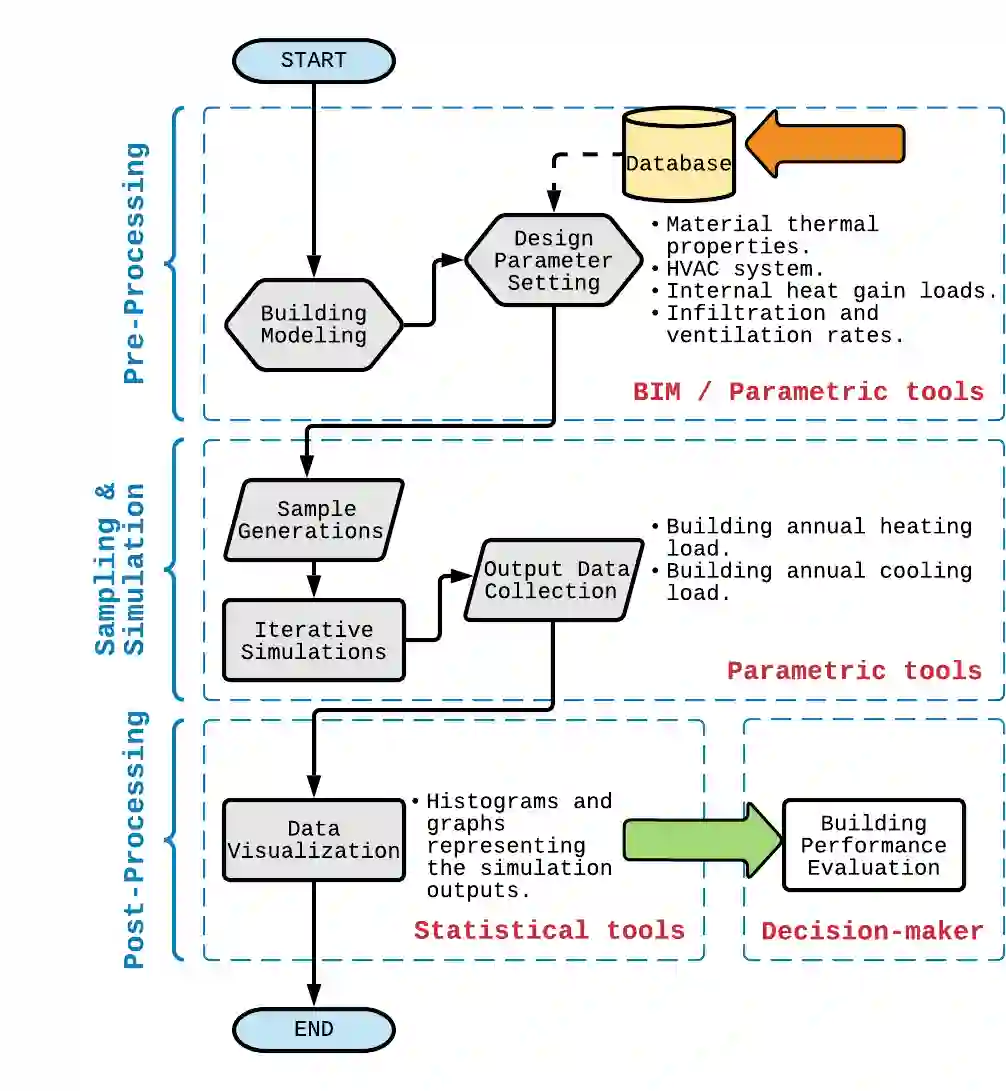 翻译:因此,该领域的研究人员倾向于采用可行的替代方法,而不是使用确定性设计方法,例如概率法;这项研究处理与以业绩为驱动的建筑设计的传统方法有关的挑战,即忽视现有的不确定性,缺乏一个系统框架,将风险评估纳入建筑绩效分析;这项研究提出了一个框架(BIMProbE),将基于BIM的参数工具与基于BIM的概率性绩效分析结合起来,以便利在基于业绩的建筑设计决策中进行不确定性分析和风险评估;利用假设性建筑设计设想来展示拟议框架的应用;结果显示,概率法导致业绩排序顺序不同于确定性方法;此外,根据不同风险态度评价设计选项,概率法也允许根据不同风险态度评价设计选项。