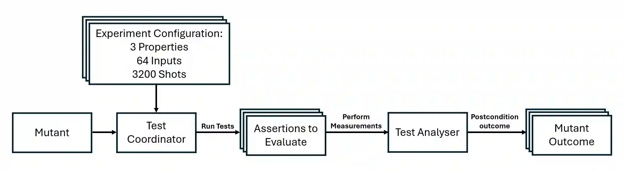 翻译:先前已有研究提出在Q#中通过QSharpCheck对量子程序进行基于属性的测试,但该实现功能有限、缺乏可扩展性,且仅使用单一属性在有限范围的程序上进行了评估。为突破这些局限,我们提出了QuCheck——一个在Qiskit中增强的基于属性测试框架。通过利用Qiskit及更广泛的Python生态系统,QuCheck简化了属性构建流程,引入了灵活的输入生成器与断言机制,并支持表达力更强的前置条件。我们通过对五个量子程序(2-10个量子比特)进行变异分析来评估其有效性,通过调整属性数量、输入参数和测量次数来考察这些因素对故障检测的影响,并验证基于属性的测试方法在不同条件下的有效性。结果显示:变异分数(衡量故障检测能力的指标)与评估的属性数量呈显著正相关,而误报率与测量次数呈中等程度负相关。在最全面的测试配置中,评估三个属性的测试方案在所有五种算法上获得的平均变异分数介于0.90至0.92之间,误报率介于0到0.04之间。尽管出现一次误报,QuCheck比QSharpCheck多检测出36.0%的故障,且执行时间减少了81.1%。这些发现印证了基于属性的测试在验证量子系统方面的可行性。