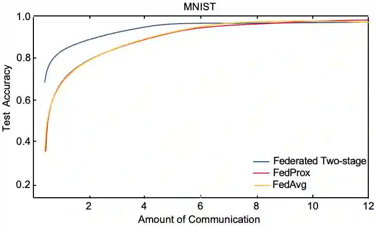 Federated learning is a distributed machine learning mechanism where local devices collaboratively train a shared global model under the orchestration of a central server, while keeping all private data decentralized. In the system, model parameters and its updates are transmitted instead of raw data, and thus the communication bottleneck has become a key challenge. Besides, recent larger and deeper machine learning models also pose more difficulties in deploying them in a federated environment. In this paper, we design a federated two-stage learning framework that augments prototypical federated learning with a cut layer on devices and uses sign-based stochastic gradient descent with the majority vote method on model updates. Cut layer on devices learns informative and low-dimension representations of raw data locally, which helps reduce global model parameters and prevents data leakage. Sign-based SGD with the majority vote method for model updates also helps alleviate communication limitations. Empirically, we show that our system is an efficient and privacy preserving federated learning scheme and suits for general application scenarios.