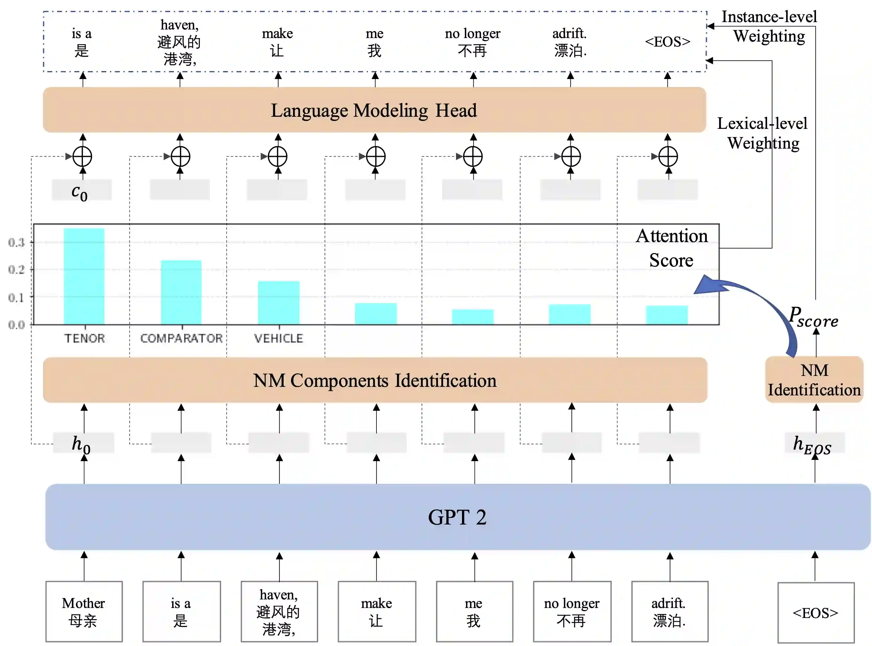 翻译:名义隐喻经常用于人类语言,并被证明在说服、表达情感和激发兴趣方面是有效的。本文件处理中国名模代(NM)的问题。我们引入了一个新的多任务框架,共同优化了三项任务:NM识别、NM组成部分识别和NM代。隐喻识别模块能够进行自我培训程序,从大规模无标签的NM一代中发现新的隐喻。NM组成部分识别模块强调在培训和条件中的组成部分,这些组成部分的生成可以取得更加一致的结果。为了培训NM识别和组成部分识别模块,我们建立了一个附加说明的体,由6.3k句组成,包含多种隐喻模式。自动指标显示,我们的方法可以产生多种易读的隐喻,其中92 ⁇ 是新颖的隐喻比较。人类评估显示,我们的模型在一致性和创造性方面大大超出基线。