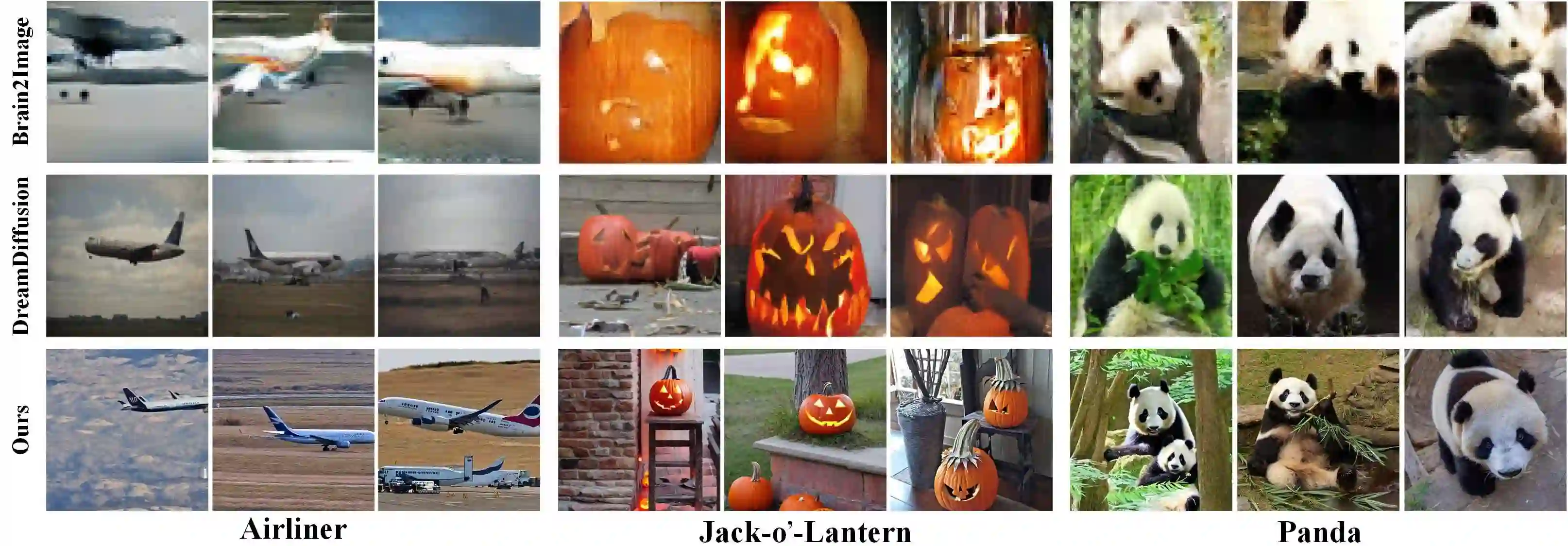 Analyzing and reconstructing visual stimuli from brain signals effectively advances understanding of the human visual system. However, the EEG signals are complex and contain a amount of noise. This leads to substantial limitations in existing works of visual stimuli reconstruction from EEG, such as difficulties in aligning EEG embeddings with the fine-grained semantic information and a heavy reliance on additional large self-collected dataset for training. To address these challenges, we propose a novel approach called BrainVis. Firstly, we divide the EEG signals into various units and apply a self-supervised approach on them to obtain EEG time-domain features, in an attempt to ease the training difficulty. Additionally, we also propose to utilize the frequency-domain features to enhance the EEG representations. Then, we simultaneously align EEG time-frequency embeddings with the interpolation of the coarse and fine-grained semantics in the CLIP space, to highlight the primary visual components and reduce the cross-modal alignment difficulty. Finally, we adopt the cascaded diffusion models to reconstruct images. Our proposed BrainVis outperforms state of the arts in both semantic fidelity reconstruction and generation quality. Notably, we reduce the training data scale to 10% of the previous work.