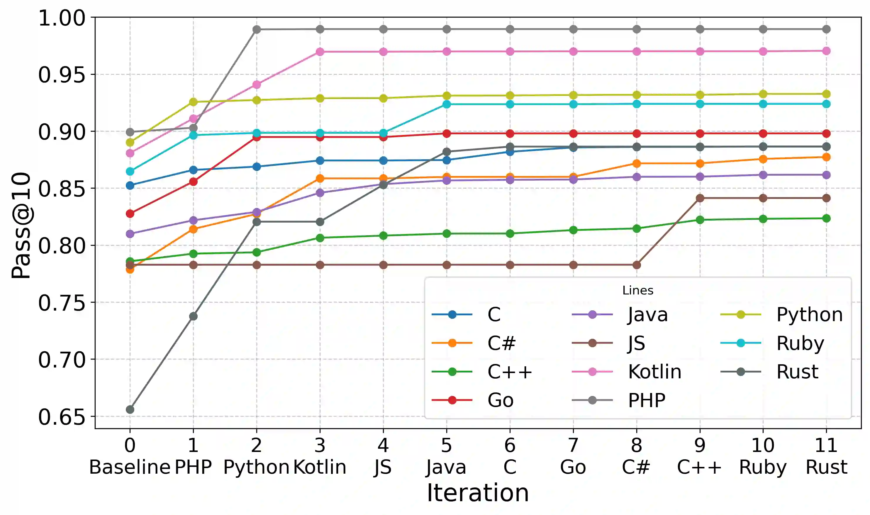 翻译:近年来,利用LLM进行自动程序修复取得了显著进展,在修复软件缺陷方面展现出强大能力。然而,当前的LLM修复方法主要集中于Java和Python等主流编程语言,由于训练资源昂贵、数据集有限及社区支持不足,往往忽视了Rust等使用率较低但正在兴起的语言。这种局限性在编程语言谱系中造成了显著的修复能力差距,LLM在多语言程序修复方面的全部潜力仍未被充分发掘。为突破这一限制,我们提出了一种新颖的跨语言程序修复方法LANTERN,该方法通过多智能体迭代修复范式,有效利用LLM在不同语言间的差异化修复能力。我们的技术核心在于:将有缺陷的代码从LLM修复能力较弱的语言,策略性地翻译至其表现更强的语言,且无需额外训练。本方法的一个关键创新在于基于LLM的决策系统,该系统能根据缺陷特征动态选择最优目标语言,并持续整合先前修复尝试的反馈信息。我们在xCodeEval基准上评估了该方法,该基准包含11种编程语言的5,068个缺陷,是一个全面的多语言测试集。实验结果表明,该方法显著提升了修复效果,尤其在代表性不足的语言上表现突出,其中Rust在Pass@10指标上实现了22.09%的提升。我们的研究首次提供了实证证据,表明跨语言翻译能显著扩展LLM的修复能力,并有效弥合不同流行度编程语言间的性能差距,为真正实现语言无关的自动程序修复开辟了新途径。