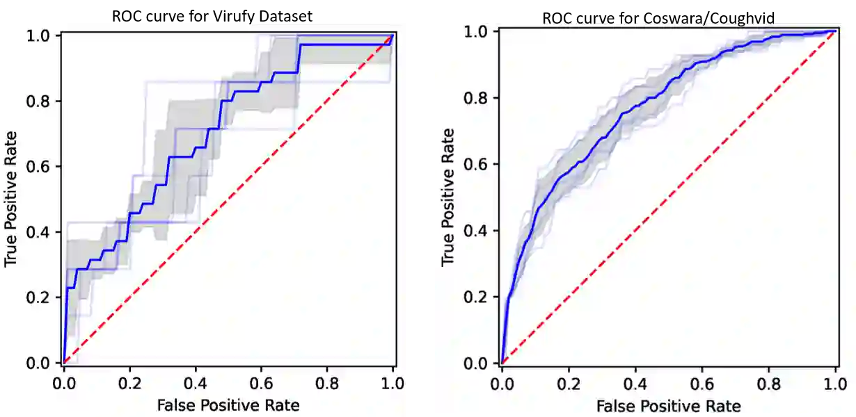 翻译:对COVID-19感染的快速和负担得起的检测方法对于降低感染率和防止医疗设施不堪重负至关重要。目前的检测COVID-19的方法要求用并非总能轻易获得的昂贵的药包进行现场检测。这项研究表明,从世界各地智能手机上获取的由众包组成的咳嗽声样可以用来开发一种基于AI的方法,精确地预测COVID-19感染,而ROC-AUC的感染率为77.1%(75.2%-78.3%)。此外,我们表明,我们的方法能够将来自拉丁美洲的众包样本和来自南亚的临床样本加以推广,而无需利用这些区域的具体样本进行进一步的培训。随着收集到更多的来自众包的数据,可以使用各种呼吸道声样本进行进一步开发,以创建一种基于咳嗽分析的机器学习法,用于COVID-19检测,这种检测有可能在临床和非临床环境中向全球所有人口群体普及。