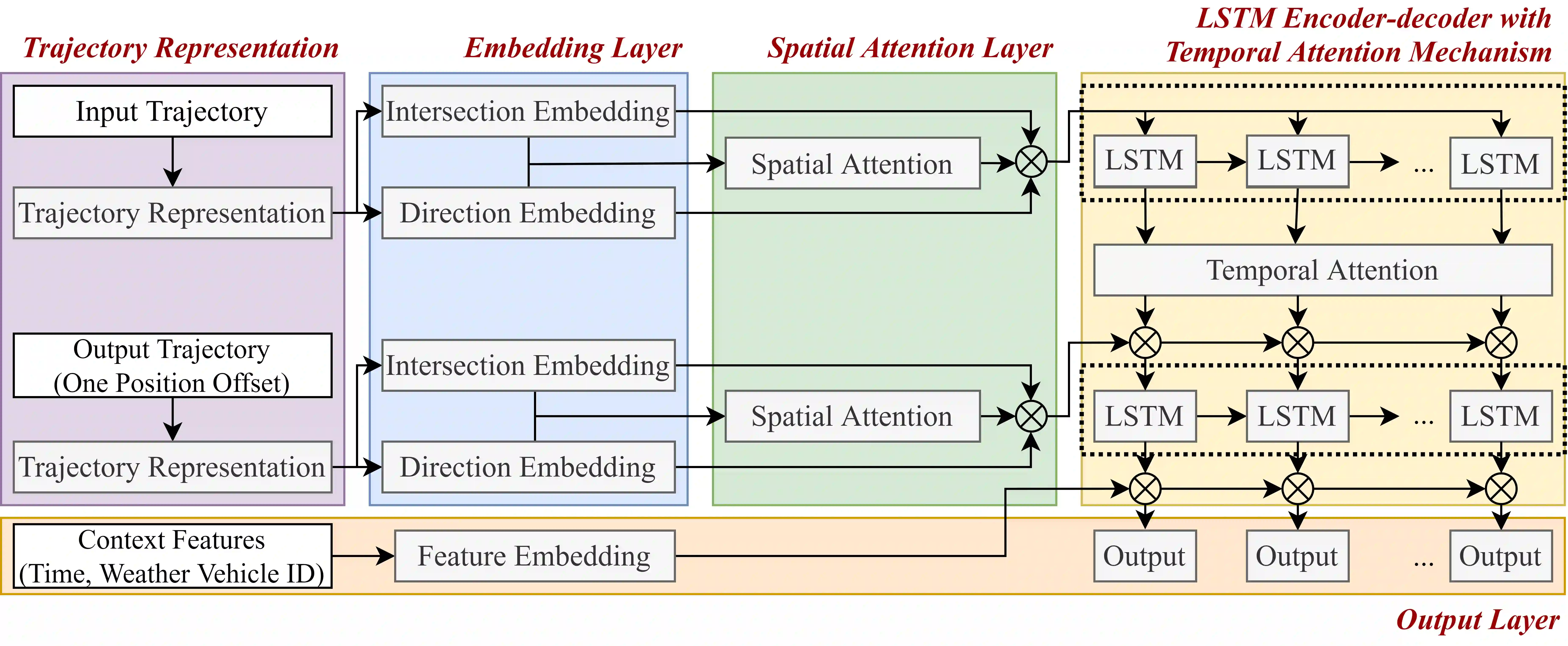翻译:城市规模车辆的轨迹预测对于车辆导航、交通管理和基于地点的建议等各种基于地点的应用非常重要。现有方法通常代表电网细胞序列、路段或意图组合的轨迹。其中没有一个是理想的,因为基于细胞的代表忽略了公路网络结构,而另外两个在分析城市规模的道路网络方面效率较低。此外,大多数模型侧重于预测近期下一位置,难以概括较长的顺序。为了解决这些问题,我们提议了一个名为D-LSTM(基于定位的长期短期记忆)的新式顺序对顺序模型,它代表每个轨迹,作为交叉路段和相关移动方向的序列,然后将其输入一个LSTM编码脱coder网络,用于未来轨迹生成。此外,我们引入一个空间关注机制,以捕捉公路网络中动态空间依赖性,以及一个时间关注机制,以滑动背景窗口捕捉轨迹数据的短期和长期依赖性时间依赖性。基于两个真实世界范围的大规模轨迹定位模型进行广泛的实验,以模拟汽车轨迹预测方法的现有轨道定位方法显示DSMANSS。