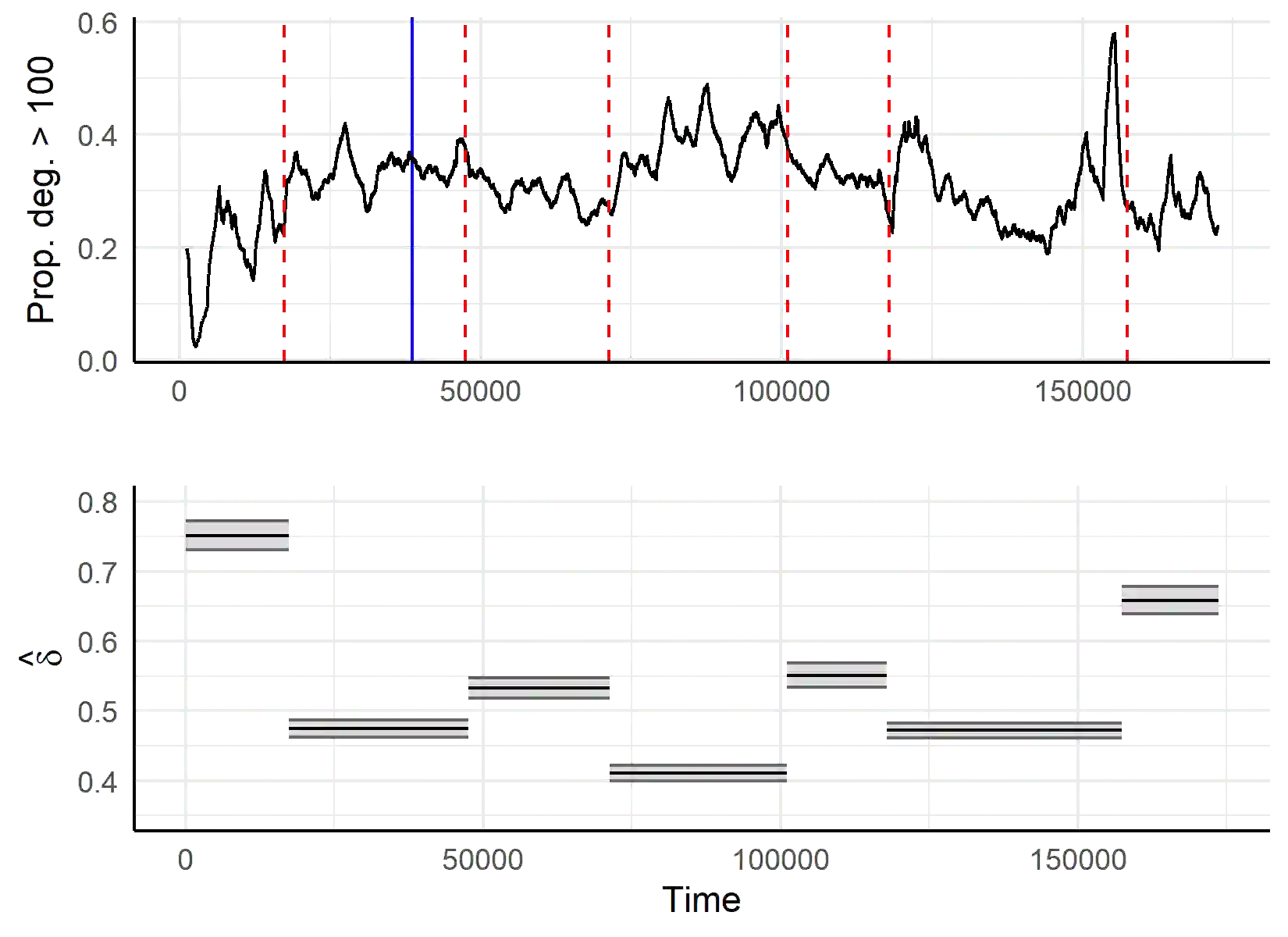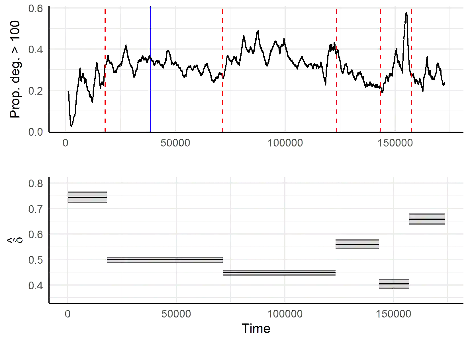 翻译:生成时间网络模型在分析复杂网络的依赖结构和演变模式方面发挥着重要作用。由于实际网络数据的复杂性,假设基础数据生成机制本身随时间变化不定,这种观察导致研究演变网络分布结构的变化点或突变。在本文中,我们提出一种基于可能性的方法,以检测无方向的优惠附加网络的变化点,并建立一个假想测试框架,以探测单一变化点,同时对变化点进行一致的估测。然后,该方法通过滑动窗口法和计算效率更高的分数统计将扩展至多个变化点设置。我们还将拟议方法与先前开发的通过模拟对变化点进行非参数估计的方法进行比较,而本文中制定的方法将用来模拟某个主题在Twitter网络中的受欢迎程度。