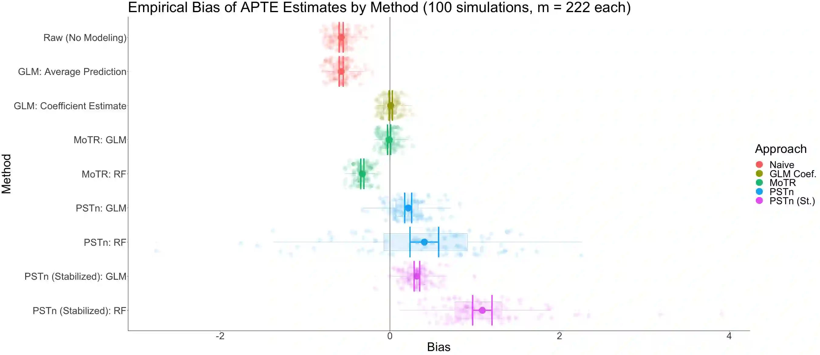 翻译:许多照顾者和自我跟踪者希望利用这些数据来帮助某个特定的人改变他们的行为,从而实现预期的健康结果。理想的是,这涉及通过使用该人自己的观察时间序列数据来辨别相关关系的可能原因。在本文中,我们估计了身体活动对睡眠时间和反之的个体间平均治疗影响。我们采用了模型双随机化(MoTR;“运动”)方法来分析一个人密集的纵向数据。形式上,MOTR是在连续干扰下应用 g-形式(即标准化、后门调整)的。它估计了稳定的重复效应,正如在n-o-i试验和单一案例实验设计中所做的那样。我们比较了我们的方法与标准方法(可能结合),以表明如何使用因果关系推论来提出更好的个性化健康行为变化建议,并为一位作者分析222天的Fitbit睡眠和步骤数据。