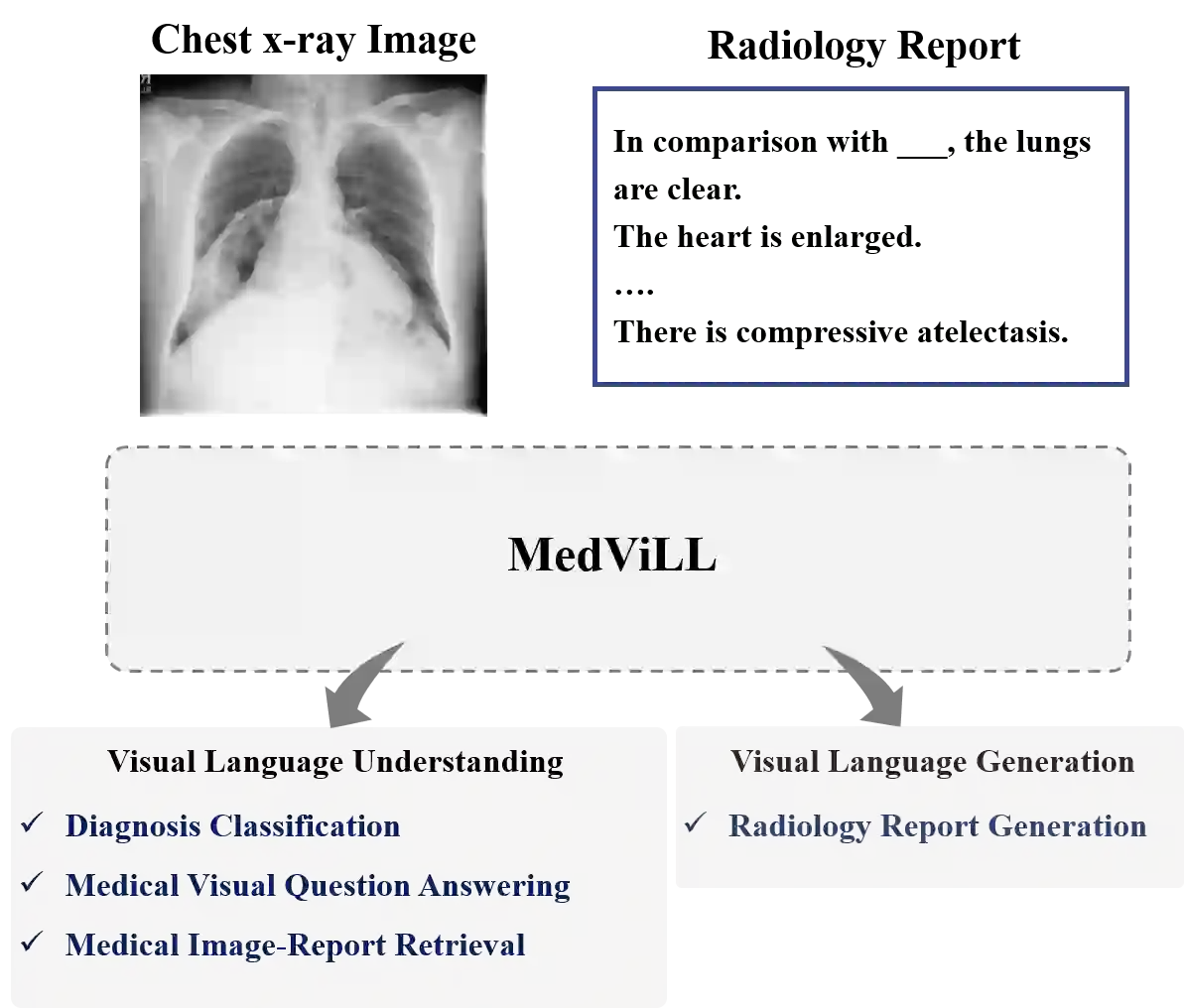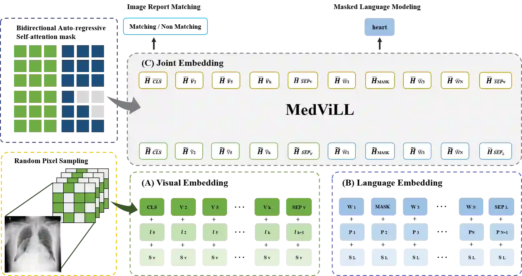翻译:最近一些研究显示,通过扩大BERT结构,实现多模式培训前目标,使BERT结构具有多模式化的目标,从而在多种愿景-语言多模式任务(如图像说明和直观回答)上取得了令人印象深刻的业绩。在这项工作中,我们探索了医疗领域一系列广泛的多模式的学习任务,特别是使用放射图像和无结构的报告。我们建议医学愿景语言学习者(MedVill)采用基于变压器的架构,同时采用新颖的多模式,掩盖关注计划,以最大限度地实现愿景-语言理解任务(图像-报告检索、疾病分类、医学视觉问题回答)和愿景-语言生成任务(报告生成)的概括性业绩。我们严格评估了四大下游任务的拟议模式,包括两套胸X光图像数据集(MI-CXR和Open-I),我们从经验上展示了MedVill公司在各种基线(包括特定任务的架构)下游任务的高级业绩。