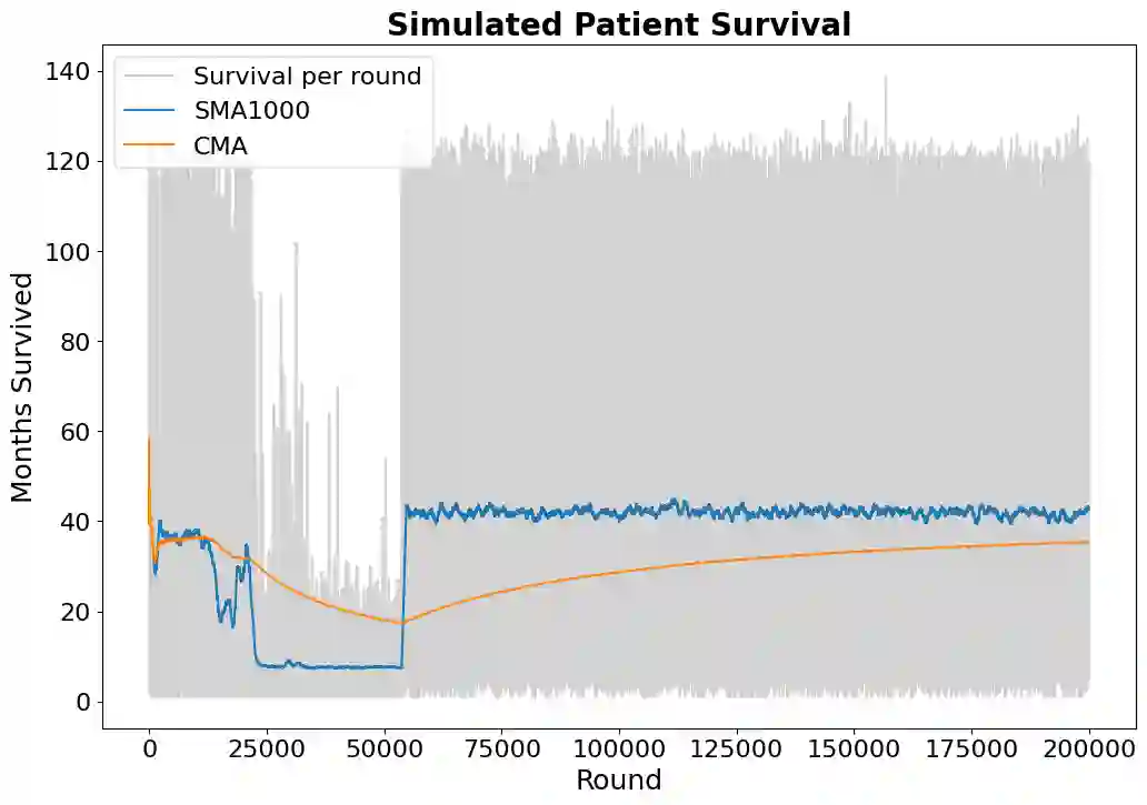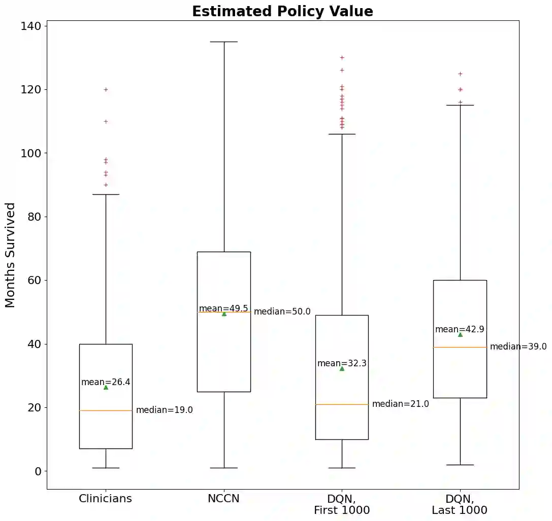 翻译:尽管其他癌症的存活率有所改善,但上腺卵巢癌患者的预测仍然令人沮丧;治疗涉及多种化疗线,经过一线治疗后,治疗变得日益多样化;用现实世界结果数据加强学习,有可能确定新的治疗战略,改善总体生存状况;我们设计一个强化学习环境,以模拟上腺卵巢癌治疗轨迹,并利用免费强化学习模型,调查模拟病人的治疗方案。