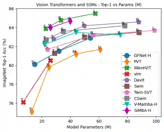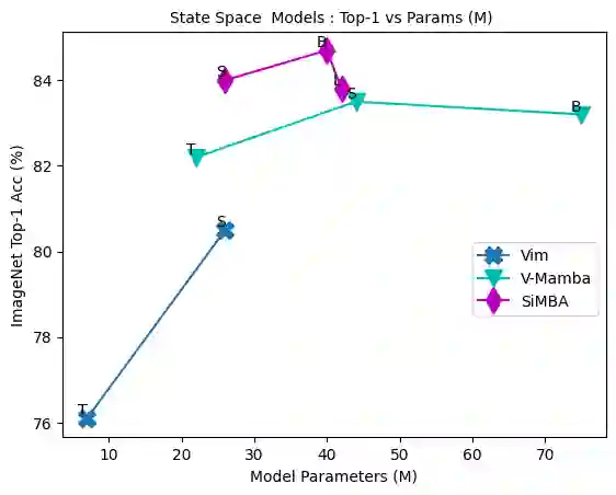 Transformers have widely adopted attention networks for sequence mixing and MLPs for channel mixing, playing a pivotal role in achieving breakthroughs across domains. However, recent literature highlights issues with attention networks, including low inductive bias and quadratic complexity concerning input sequence length. State Space Models (SSMs) like S4 and others (Hippo, Global Convolutions, liquid S4, LRU, Mega, and Mamba), have emerged to address the above issues to help handle longer sequence lengths. Mamba, while being the state-of-the-art SSM, has a stability issue when scaled to large networks for computer vision datasets. We propose SiMBA, a new architecture that introduces Einstein FFT (EinFFT) for channel modeling by specific eigenvalue computations and uses the Mamba block for sequence modeling. Extensive performance studies across image and time-series benchmarks demonstrate that SiMBA outperforms existing SSMs, bridging the performance gap with state-of-the-art transformers. Notably, SiMBA establishes itself as the new state-of-the-art SSM on ImageNet and transfer learning benchmarks such as Stanford Car and Flower as well as task learning benchmarks as well as seven time series benchmark datasets. The project page is available on this website ~\url{https://github.com/badripatro/Simba}.