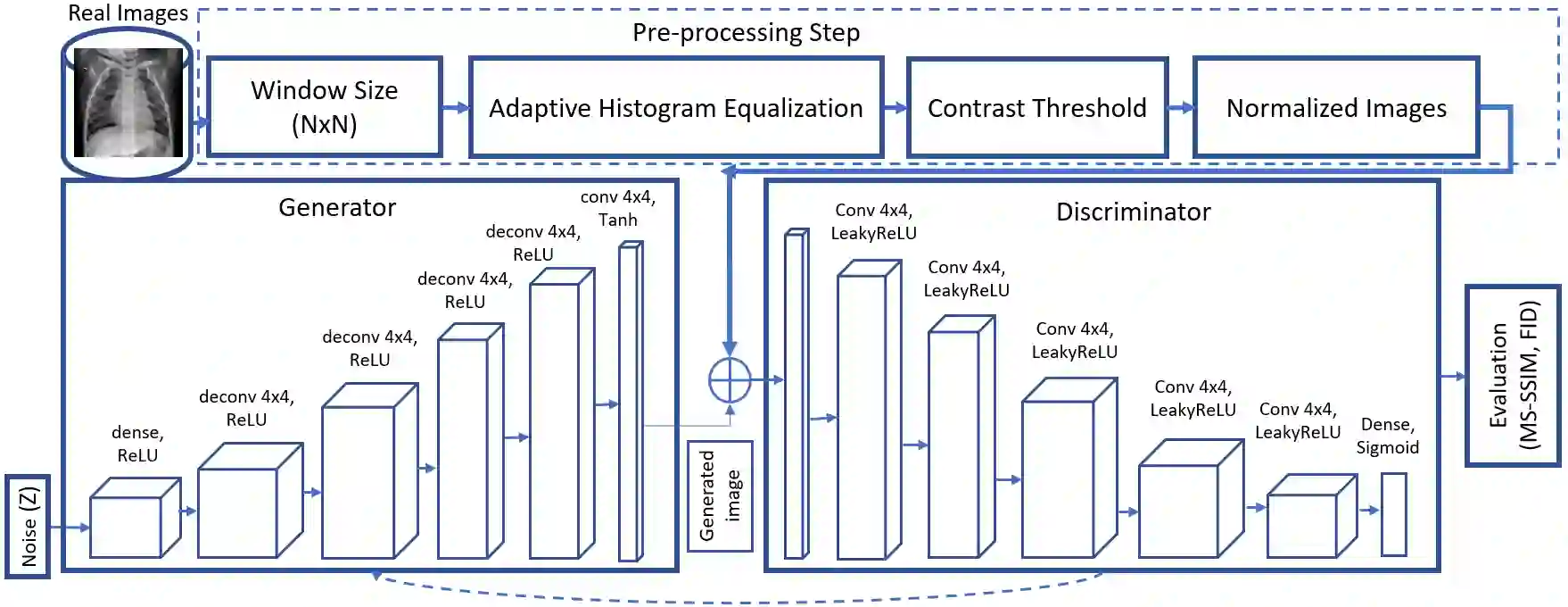 翻译:由于目标疾病的罕见性,生物医学图像数据集可能不平衡。 基因反转网络通过生成合成图像来增加数据集,在解决这种不平衡方面发挥着关键作用。 制作合成图像时,必须包含各种特征,以准确反映培训图像中特征的分布。 此外,合成图像中缺乏多种特征,可以降低机器学习分类器的性能。 模式崩溃问题可能影响基因反转网络生成多种图像的能力。 模式崩溃出现在两种类型中:阶级内部和阶级间。 本文调查了类内模式崩溃问题,并评估了随后对合成X光图像多样性的影响。 这项工作有助于实证地展示了将深层革命GAN的适应性投入图像正常化整合起来以缓解机层内模式崩溃问题的好处。 结果表明,具有适应性投入模拟正常化的DCGAN以非常规X射线图像的DCGAN外形。