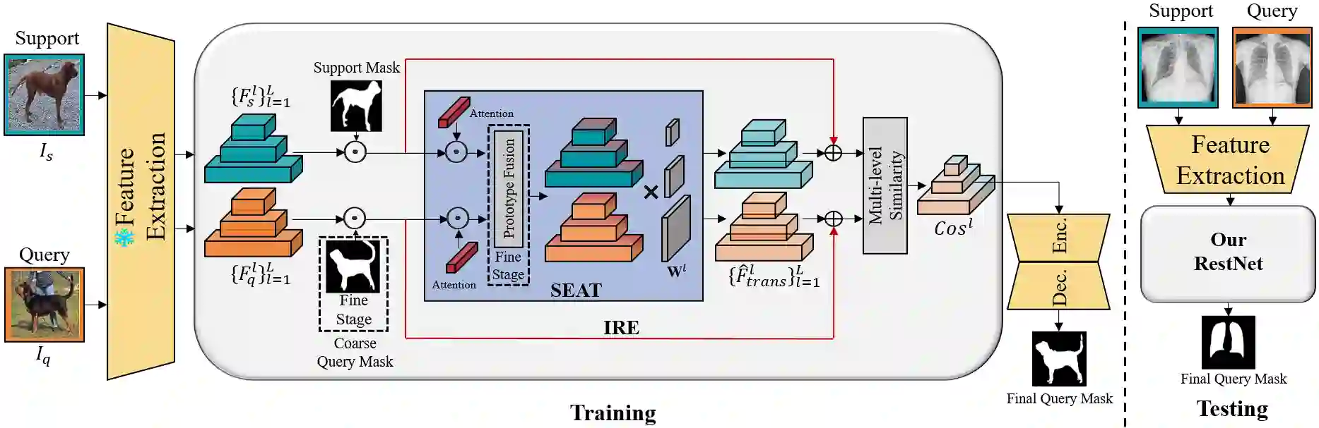 Cross-domain few-shot segmentation (CD-FSS) aims to achieve semantic segmentation in previously unseen domains with a limited number of annotated samples. Although existing CD-FSS models focus on cross-domain feature transformation, relying exclusively on inter-domain knowledge transfer may lead to the loss of critical intra-domain information. To this end, we propose a novel residual transformation network (RestNet) that facilitates knowledge transfer while retaining the intra-domain support-query feature information. Specifically, we propose a Semantic Enhanced Anchor Transform (SEAT) module that maps features to a stable domain-agnostic space using advanced semantics. Additionally, an Intra-domain Residual Enhancement (IRE) module is designed to maintain the intra-domain representation of the original discriminant space in the new space. We also propose a mask prediction strategy based on prototype fusion to help the model gradually learn how to segment. Our RestNet can transfer cross-domain knowledge from both inter-domain and intra-domain without requiring additional fine-tuning. Extensive experiments on ISIC, Chest X-ray, and FSS-1000 show that our RestNet achieves state-of-the-art performance. Our code will be available soon.