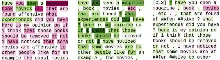 翻译:州和语言测试机构都积极使用基于深学习的自动读取 Scorning (AES) 系统来评估数百万名候选人参加从大学申请到签证审批等改变人生的决定。 然而,几乎没有研究来理解和解释深学习的评分算法的黑箱性质。 以前的研究表明, 评分模式很容易被愚弄。 在本文中, 我们探索了它们惊人的对抗性细小性( AES) 背后的原因。 我们利用最近在可解释性方面的进展, 以找出诸如一致性、 内容、 词汇和相关性等特征对于自动评分机制的重要性。 我们用这个来调查过度敏感度( 即: 产出评分的大幅变化, 投入论文内容稍有改变) 和过度可理解性( ) 。 我们的评分模型尽管被训练为“ 端对端” 模型, 但也发现它们比BERT更丰富的背景嵌嵌入模型, 表现得像袋词模型。 我们用几个字来决定论文评分, 而没有过分的评分数, 使任何选择的评分 模式 能够进行最接近的 。