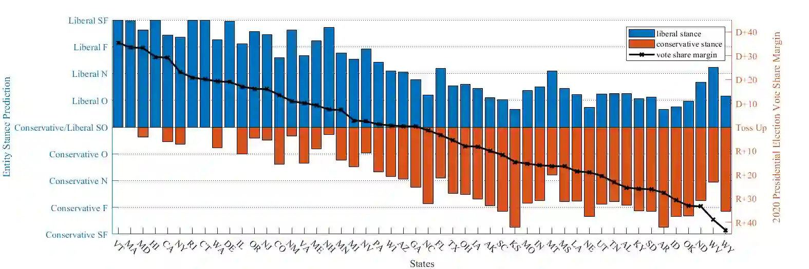 翻译:由于政治意识形态日益两极化,政治立场的发现已成为一项重要任务。大多数现有工作的重点是查明新闻文章或社交媒体文章中的观点,而个人和组织等社会实体则制作这些文本,并实际采取立场。在本文件中,我们提出实体立场预测的新任务,其目的是预测各实体的社会和政治背景,预测其立场;具体地说,我们从维基百科检索有关当代美国政治的社会实体的事实。然后,我们在域专家的帮助下,对社会实体对政治意识形态的立场进行批注。在界定实体立场预测的任务之后,我们提出了一个基于图表的解决办法,从收集的事实中建立不同的信息网络,并采用封闭式关系图共变网络进行代表性学习。然后,我们用监督、自我监督和不受监督的损失功能进行训练,这些功能受多种社会和政治现象的驱动。我们进行广泛的实验,将我们的方法与现有的文本和图表分析基线进行比较。我们的模式在确定实体立场预测后,取得了最高准确性,并得出关于社会实体立场的启发性见解。我们进一步进行对比研究和参数分析,以研究拟议办法的机制和有效性。