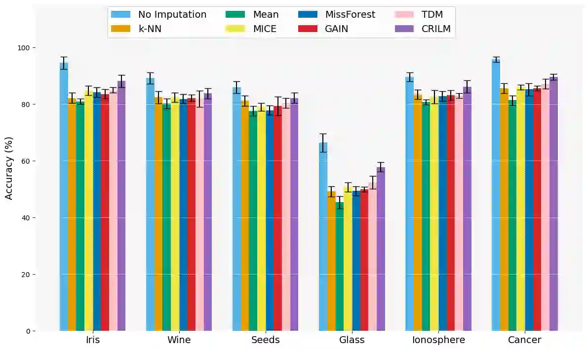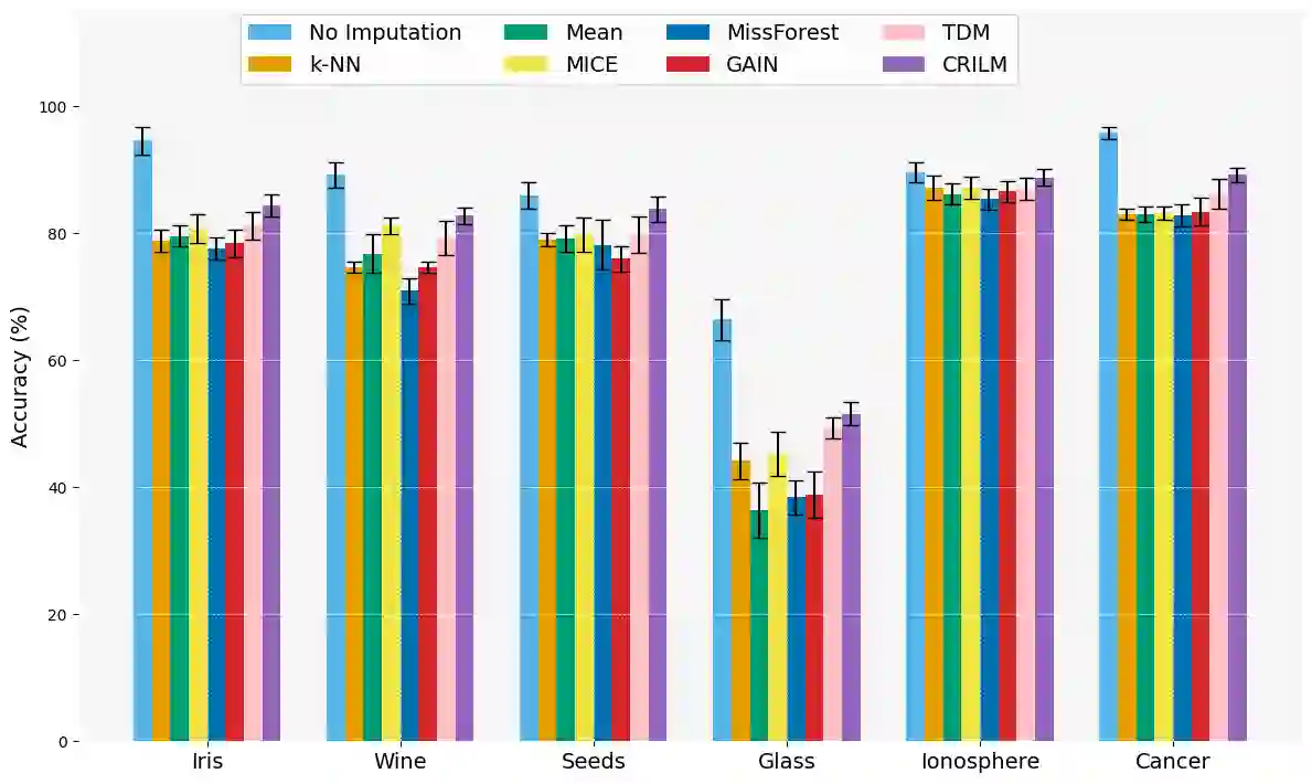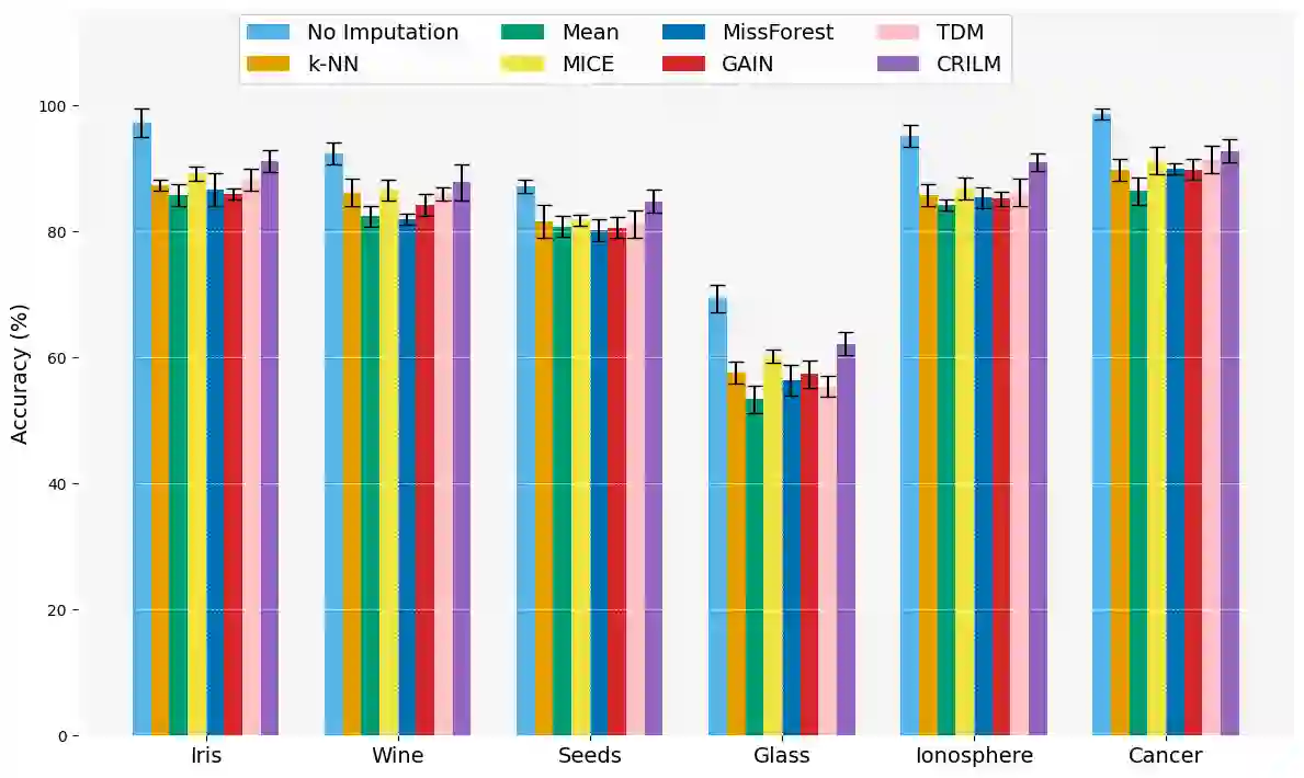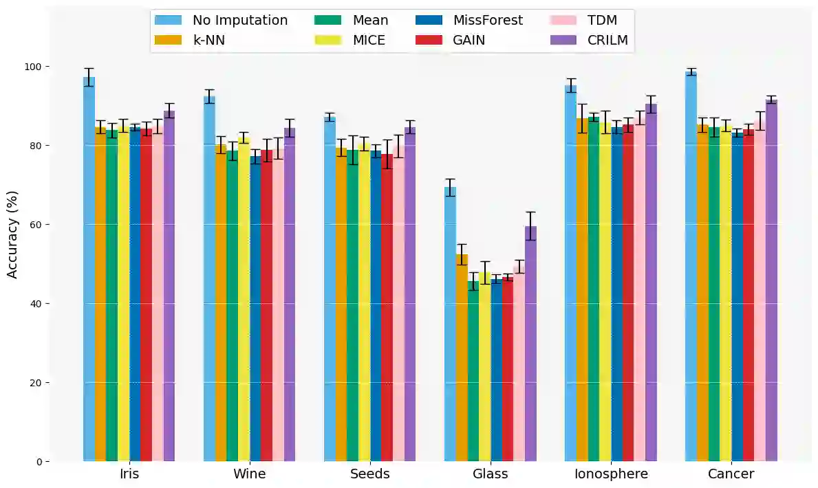 翻译:本文提出了一种名为**C**ontextually **R**elevant **I**mputation leveraging pre-trained **L**anguage **M**odels (**CRILM**)的新方法,用于处理表格数据集中的缺失数据。与传统数值估计方法不同,CRILM利用预训练语言模型为缺失值生成上下文相关的描述符。该方法使数据集与语言模型的优势对齐,允许大型语言模型生成这些描述符,而小型语言模型可在增强后的数据集上进行微调,从而提升下游任务性能。我们的评估表明,在MCAR、MAR及具有挑战性的MNAR场景下,CRILM均表现出卓越的性能和鲁棒性,相比最佳基线方法提升高达10%。通过减少偏差(尤其在MNAR设置中),CRILM不仅提升了下游任务性能,还为资源受限环境提供了经济高效的解决方案。