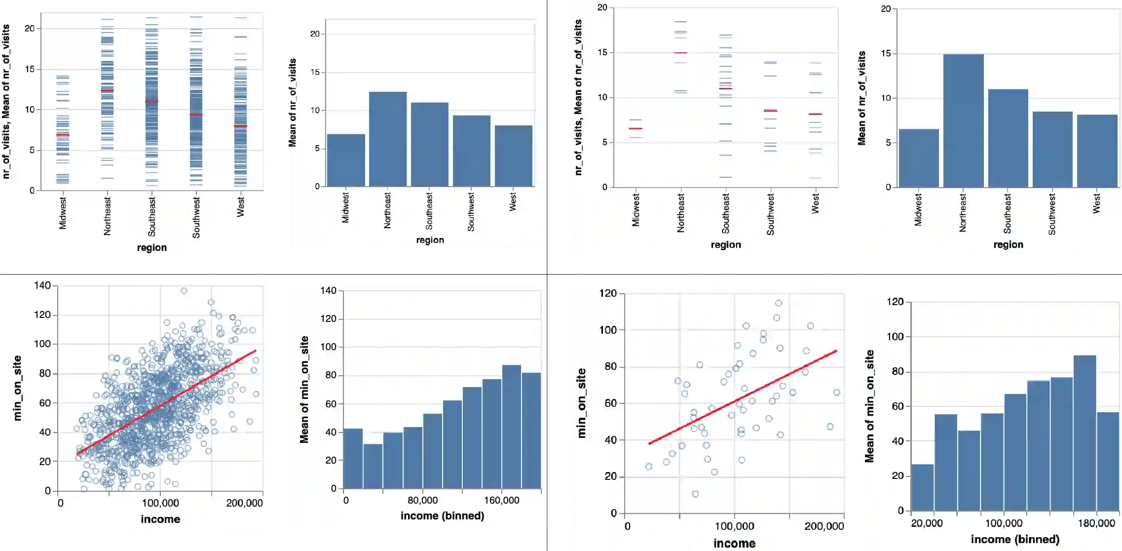 翻译:计算机科学和统计的研发产生了日益复杂的软件界面,用于互动和探索性分析,最优化的软件界面可以方便地进行模式发现和数据暴露。但设计理论强调在其他分析阶段的探索,从而将灵活性的必要性混为一谈,其结论是:探索性视觉分析本质上是没有模型的,不能正规化。我们描述了在不以人类统计推理理论为根据的情况下,探索性视觉分析的研究会如何导致相互矛盾的界面目标和不确定性的表述,从而可能妨碍用户得出有效的推论。我们讨论了巴伊西亚统计框架中的模型检查概念如何将探索性和确认性分析结合起来,以及这种理解与其他拟议的图形推理理论有何关联。由模型检查驱动的交互式分析提出了围绕探索性和视觉分析的软件和实证研究的新方向。例如,系统应当能够具体和明确地将数据与无效和其他参考分布的数据进行比较,并更好地表述不确定性。Bayesian和其他图形推理理论的影响应当根据人们为理论发展而进行的互动分析的结果加以检验。