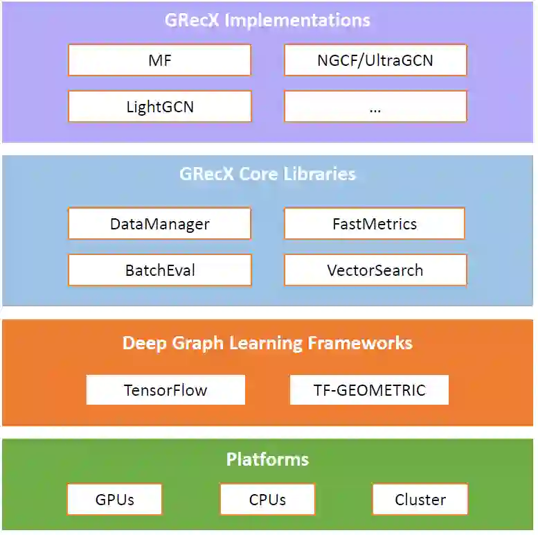 翻译:在本文中,我们介绍GRecX,这是以高效和统一的方式将基于GNN的基于GNN的建议模式作为基准的开放源码的TensorForFlow框架。GNN建议基准的核心图书馆由建立基于GNN的建议基准的核心图书馆组成,以及执行基于GNN的流行建议模式。核心图书馆为建立高效和统一的基准提供了必不可少的组成部分,包括快速计量(高效计量图书馆)、VectorSearch(基于密度病媒的高效相似搜索图书馆)、BatchEval(高效的小型批量评估图书馆)和数据管理员(统一的数据集管理图书馆)。特别是为公平比较基于GNNN的各种不同复杂的基于GNN的建议模式提供一个统一基准,我们设计一个新的衡量基准矩阵MF-X,将其纳入到快计量部分。基于TensorFlow GNNNT图书馆 tf_geoormormation, GRecX仔细执行各种基于GNNE的建议模式。我们仔细应用这些基准模型,以复制文献中报告的绩效,我们的执行通常更加高效和友好。最后,GREX试验允许以GNC方式将GNC/rec用于基准和GC的测试结果,我们用一个基准和基准使用。