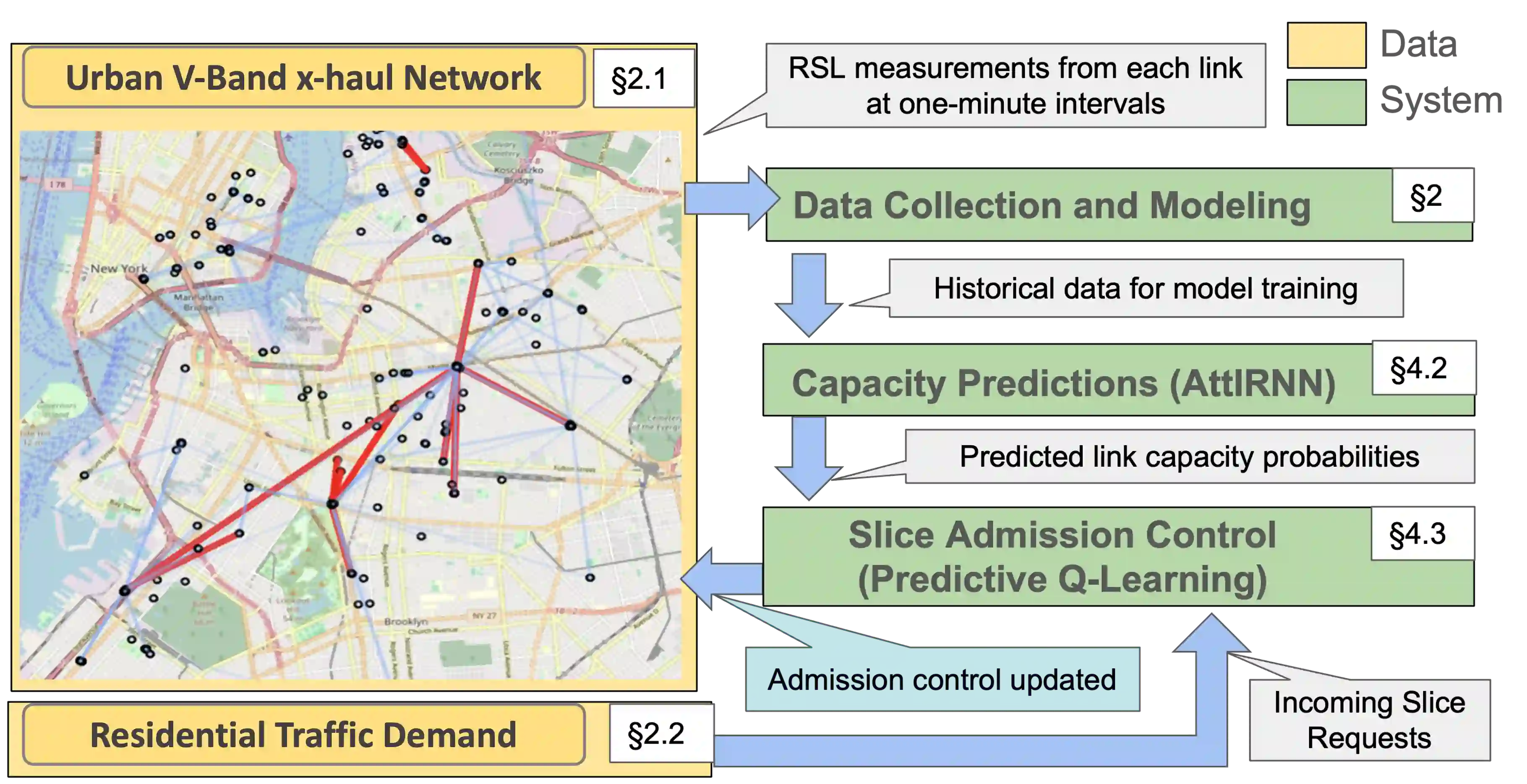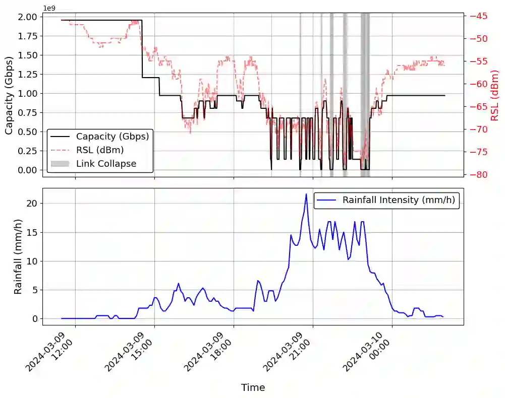 翻译:随着新兴应用对更高吞吐量和更低延迟的需求日益增长,运营商越来越多地在x-haul传输网络(涵盖前传、中传和回传段)内部署毫米波(mmWave)链路。然而,毫米波频率固有的易受天气相关衰减(尤其是雨衰)影响的特性,使得维持严格的服务质量(QoS)要求变得复杂。这带来了一个关键挑战:在未来网络容量不确定的情况下做出准入决策。为解决此问题,我们开发了一个针对受雨衰波动影响的毫米波x-haul网络的主动切片准入控制框架。我们的目标是提升网络性能、确保QoS并优化收益,从而超越标准被动式方法的局限。所提出的框架集成了一个用于预测未来网络状况的深度学习预测器和一个基于主动Q学习的切片准入控制机制。我们利用来自密集城区毫米波x-haul部署的真实数据,并结合了链路容量衰减和动态切片需求的真实模型,验证了我们的解决方案。广泛的评估表明,在动态链路条件下,我们的主动解决方案实现了2-3倍的长期平均收益提升,为自适应准入控制提供了一个可扩展且具有韧性的框架。
