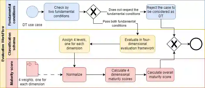 Despite the growing popularity of digital twin (DT) developments, there is a lack of common understanding and definition for important concepts of DT. It is needed to address this gap by building a shared understanding of DT before it becomes an obstacle for future work. With this challenge in view, the objective of our study is to assess the existing DT from various domains on a common basis and to unify the knowledge and understanding of DT developers and stakeholders before practice. To achieve this goal, we conducted a systematic literature review and analyzed 25 selected papers to identify and discuss the characteristics of existing DT's. The review shows an inconsistency and case-specific choices of dimensions in assessing DT. Therefore, this article proposes a four-dimensional evaluation framework to assess the maturity of digital twins across different domains, focusing on the characteristics of digital models. The four identified dimensions in this model are Capability, Cooperability, Coverage, and Lifecycle. Additionally, a weight mechanism is implemented inside the model to adapt the importance of each dimension for different application requirements. Several case studies are devised to validate the proposed model in general, industrial and scientific cases.