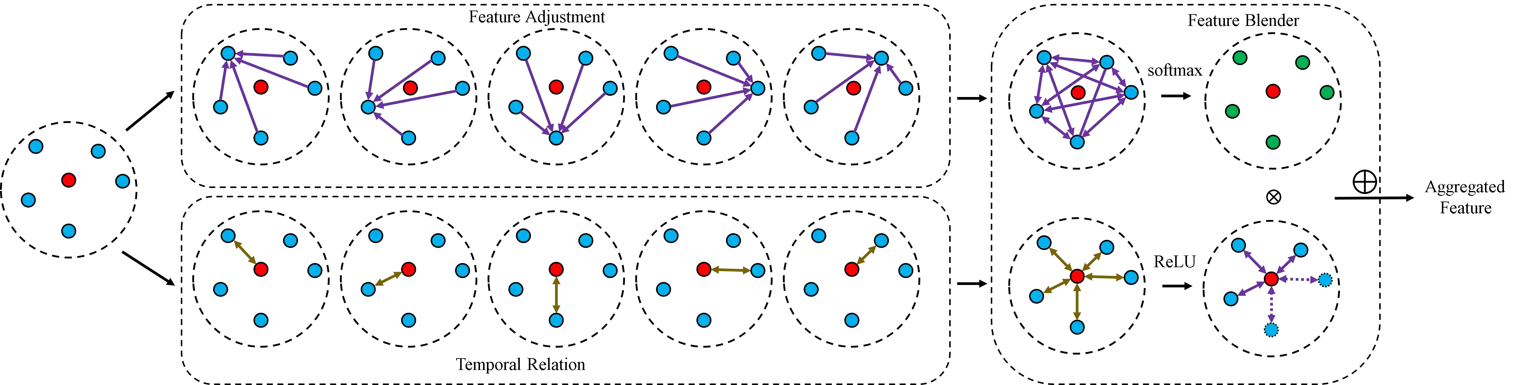 Video objection detection is a challenging task because isolated video frames may encounter appearance deterioration, which introduces great confusion for detection. One of the popular solutions is to exploit the temporal information and enhance per-frame representation through aggregating features from neighboring frames. Despite achieving improvements in detection, existing methods focus on the selection of higher-level video frames for aggregation rather than modeling lower-level temporal relations to increase the feature representation. To address this limitation, we propose a novel solution named TF-Blender,which includes three modules: 1) Temporal relation mod-els the relations between the current frame and its neighboring frames to preserve spatial information. 2). Feature adjustment enriches the representation of every neigh-boring feature map; 3) Feature blender combines outputs from the first two modules and produces stronger features for the later detection tasks. For its simplicity, TF-Blender can be effortlessly plugged into any detection network to improve detection behavior. Extensive evaluations on ImageNet VID and YouTube-VIS benchmarks indicate the performance guarantees of using TF-Blender on recent state-of-the-art methods.