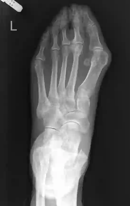 Angular measurements is essential to make a resonable treatment for Hallux valgus (HV), a common forefoot deformity. However, it still depends on manual labeling and measurement, which is time-consuming and sometimes unreliable. Automating this process is a thing of concern. However, it lack of dataset and the keypoints based method which made a great success in pose estimation is not suitable for this field.To solve the problems, we made a dataset and developed an algorithm based on deep learning and linear regression. It shows great fitting ability to the ground truth.