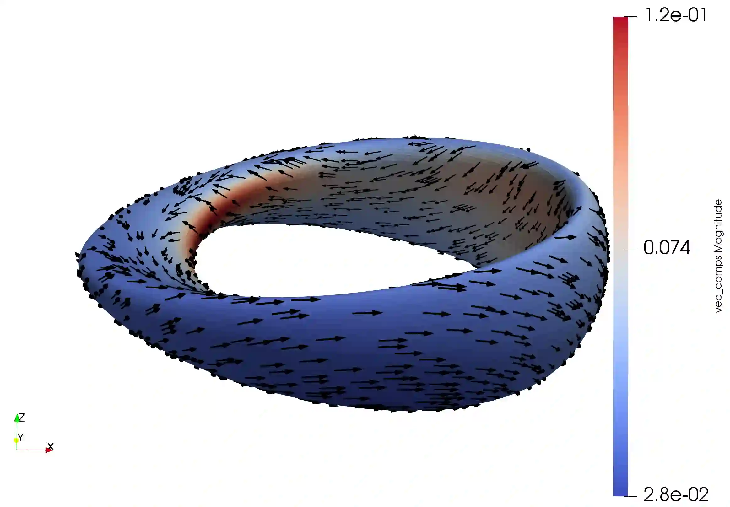 翻译:嵌入三个维度的封闭表面的拉普尔-贝特拉米问题在许多物理领域出现,包括分子动态(表层扩散)、电磁矢量场和流体动态(卵质变形),利用古典潜在理论,Laplace-Beltrami操作员可以与内核翻译变异的有机操作员预先/后修整,导致二类的Fredholm集成方程式。这些方程式具有来自潜在理论的标准拉普内核,因此方程式可以快速、准确地使用快速多极方法(FMMs)和高阶二次曲线校正的组合来解决。在这项工作中,我们详细介绍了这种方案,提出了Laplace-Beltrami问题的两种替代整体配方,每种配方的溶液都可以通过FMM加速获得。我们然后介绍了溶解器的若干应用,重点是对电磁电磁中许多应用的已知调控场进行计算。每个应用中都会有一个数字结果的电池,详细介绍了各种地貌的溶剂的性能。