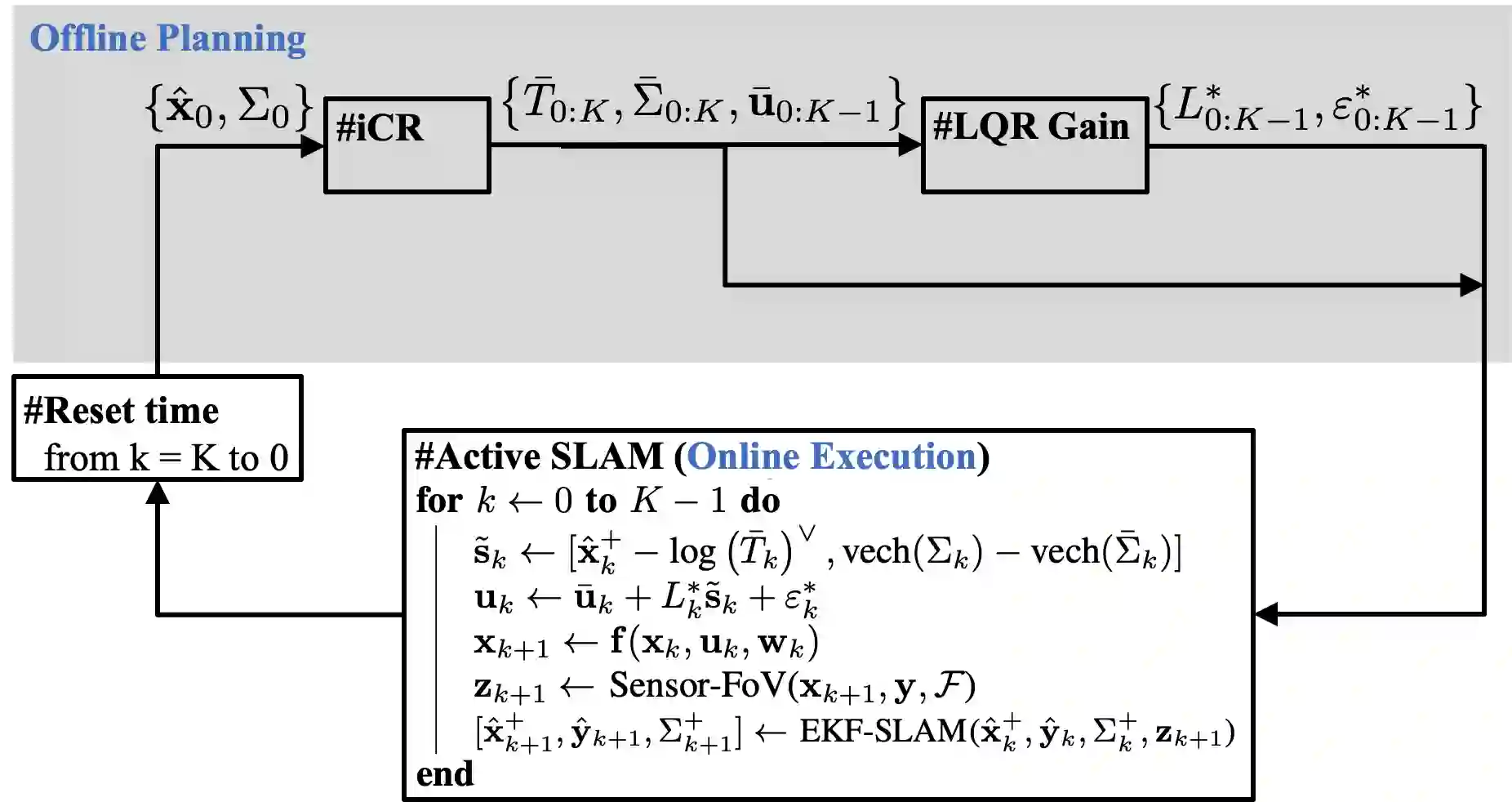 翻译:本文提出了一种新型的动态同步本地化和绘图(SLAM)方法,在随机机器人动态模型上不断优化轨迹。这个问题被正式确定为对连续机器人运动模型的一种随机最佳控制,以尽量减少涉及里程碑状态共变矩阵的成本功能。我们通过通过迭代共变监管(iCR)和由线性夸德里亚管理公司(LQR)在随机机器人和常变动态控制下进行闭路反馈控制,分别获得受确定性动态影响的开放环流控制序列来解决这个问题。 拟议的优化方法在预测不确定性演变和合成高信息化感测轨迹时,捕捉到本地化和绘图之间的结合。我们用有限视野的相对定位测量来显示其在积极的基于地标的 SLM 中的表现。