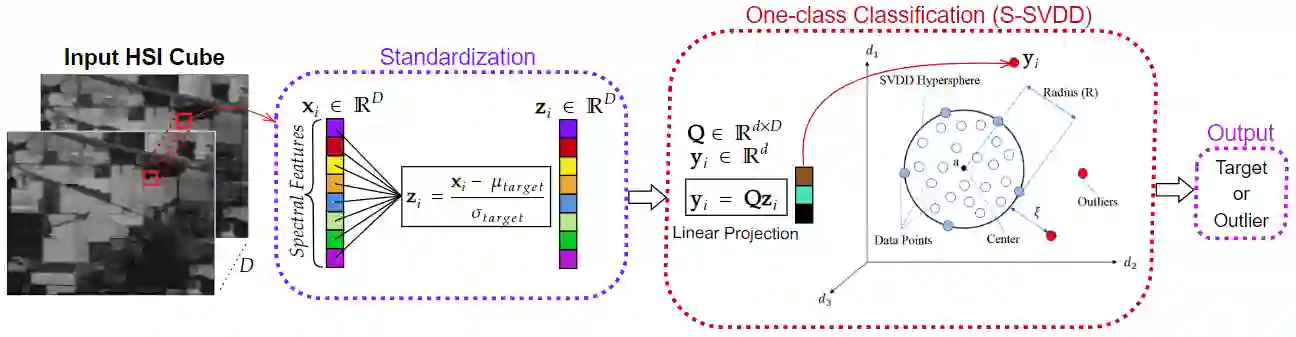 翻译:高光谱图像分类是许多应用中的重要任务,如环境监测、医学成像和土地利用/覆盖分类。由于最近高光谱传感器所获得的大量光谱信息,使用传统的机器学习方法对采集到的图像进行分析是一项具有挑战性的任务。随着频带数量的增加,为了达到合理的分类精度,所需的训练样本数量呈指数增长,这也被称为维数灾难。因此,在执行任何HSI数据的分类任务之前,通常会应用单独的波段选择或降维技术。在本研究中,我们研究了最近提出的用于单类分类(OCC)的子空间学习方法。这些方法将高维数据映射到优化了单类分类的低维特征空间中。因此,在所提出的分类框架中无需单独的降维或特征选择程序。此外,单类分类器能够从仅一个类别的数据中学习数据描述。考虑到LULC分类问题的不平衡标签和丰富的光谱信息(高维度数量),本提出分类方法非常适合HSI数据。总的来说,这是一项针对HSI数据的子空间学习单类分类的开创性研究。我们分析所提出的流水线中提出的子空间学习单类分类器的性能。 我们的实验验证所提出的方法有助于解决维数灾难以及HSI数据的不平衡性质。
