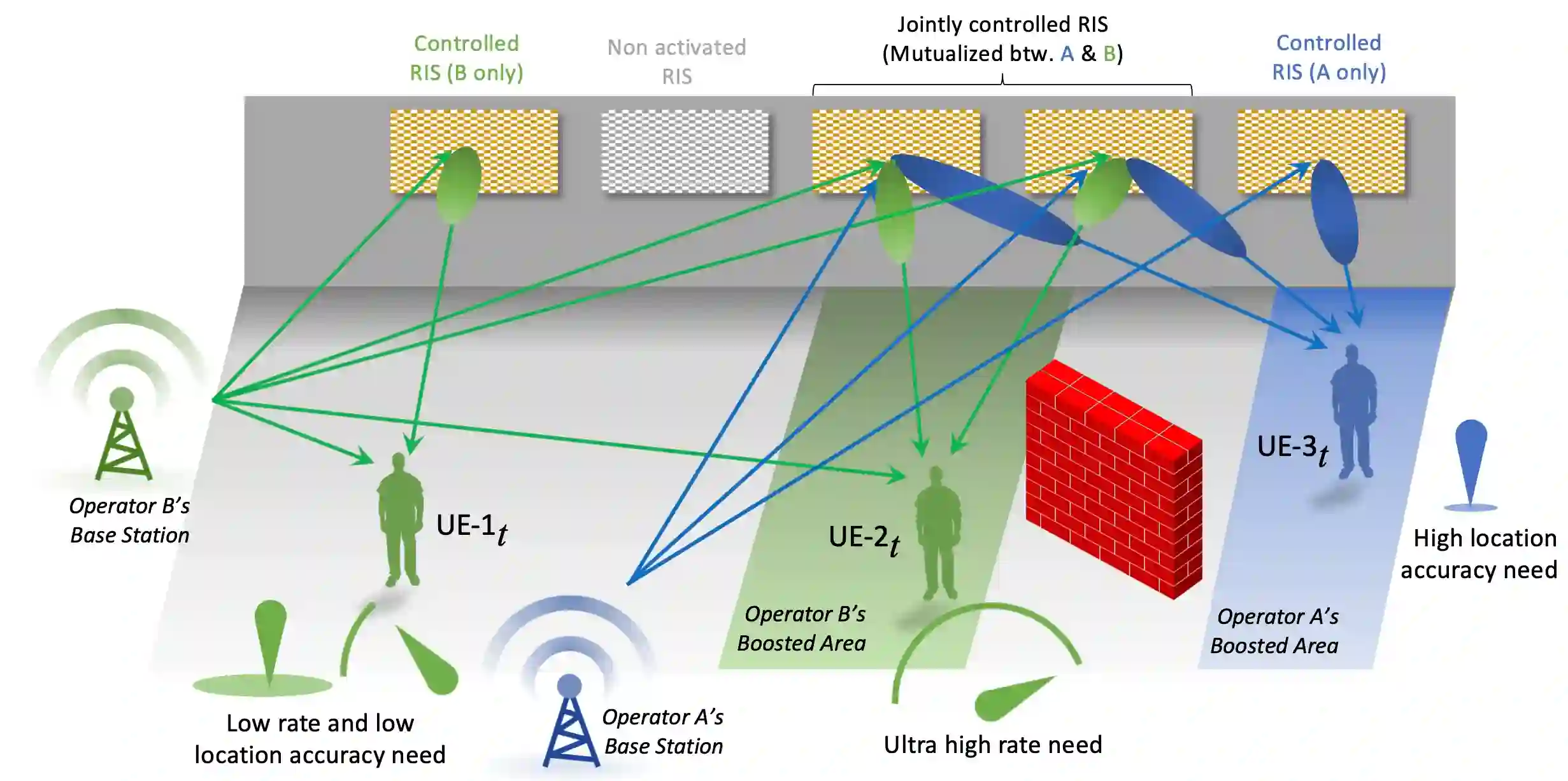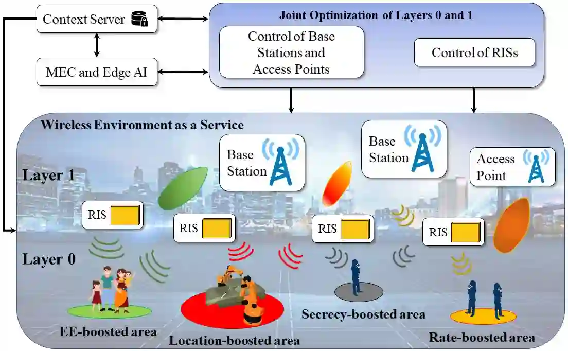 翻译:关于即将到来的第六代(6G)网络的各种愿景都指向灵活的连接和计算技术,以支持未来的创新服务和相应的使用案例。 6G应该能够适应不断变化的和多样化的应用、未来的规章以及不同的用户、服务和基于地点的要求。在5G之后建设智能和能源可持续的无线系统的一个关键要素是可配置的智能和智能地面(RIS),它提供了可编程控制和无线传播环境的形成。利用这一技术潜力,我们在本篇文章中引入了两个新概念:一)无线环境作为一种服务,它利用创新的RIS-动力网络模式来交换多样化的、通常是相互冲突的连通性目标;二)由基于RIS的连通性所促成的绩效提升领域,它代表了高度空间和时间集中的相互竞争的服务提供领域。我们讨论了关键技术促进者和研究挑战与拟议的网络模式,并突出强调了RIS在近期开放电台接入网络架构中的潜在深刻作用。