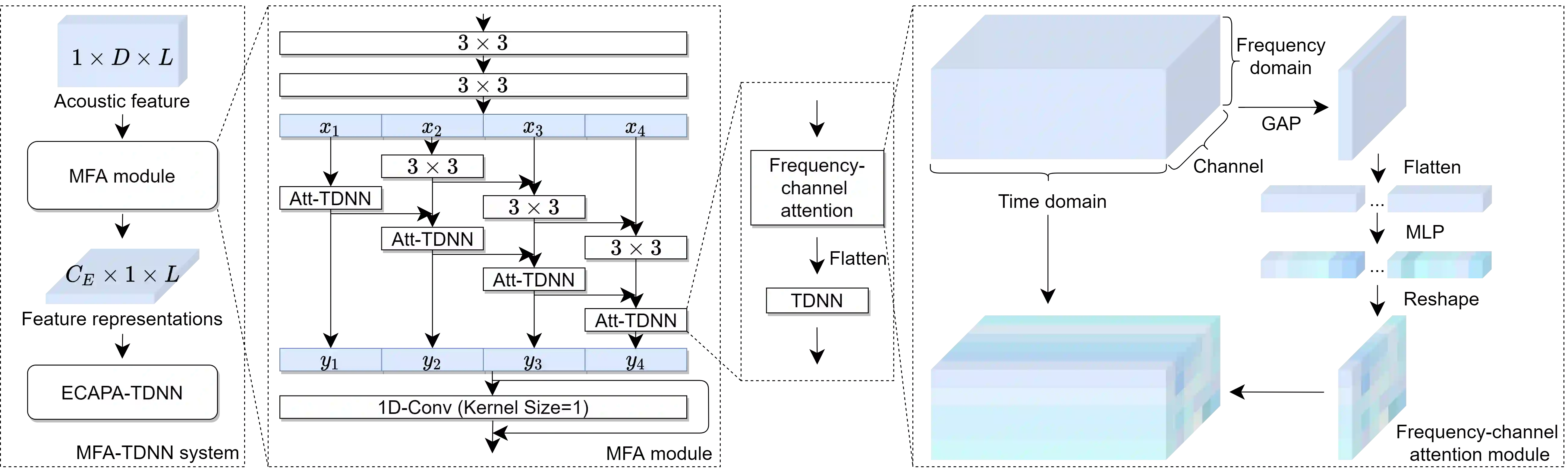 翻译:时间延迟神经网络(TDNNN)是针对依赖文字的发言者进行校验的最先进的神经解决方案之一,然而,它需要大量的过滤器来捕捉任何本地频率区域的发言者特点;此外,这些系统的性能在短话情况下可能会退化;为了解决这些问题,我们建议采用多尺度的频率频道关注(MFA),通过由动态神经网络和TDNN组成的新型双向设计来描述不同规模的发言者特点。我们评估了VoxCeleb数据库中拟议的MFA, 并观察到与MFA的拟议框架可以在降低参数和计算复杂性的同时实现最新性能。此外,MFA机制被认为对以短期测试语言进行语音核查是有效的。