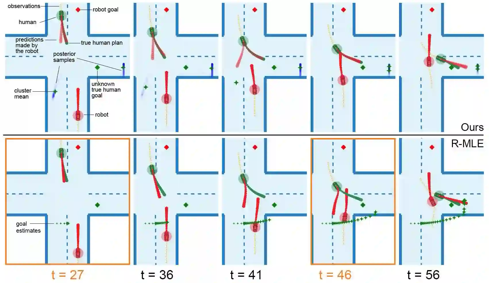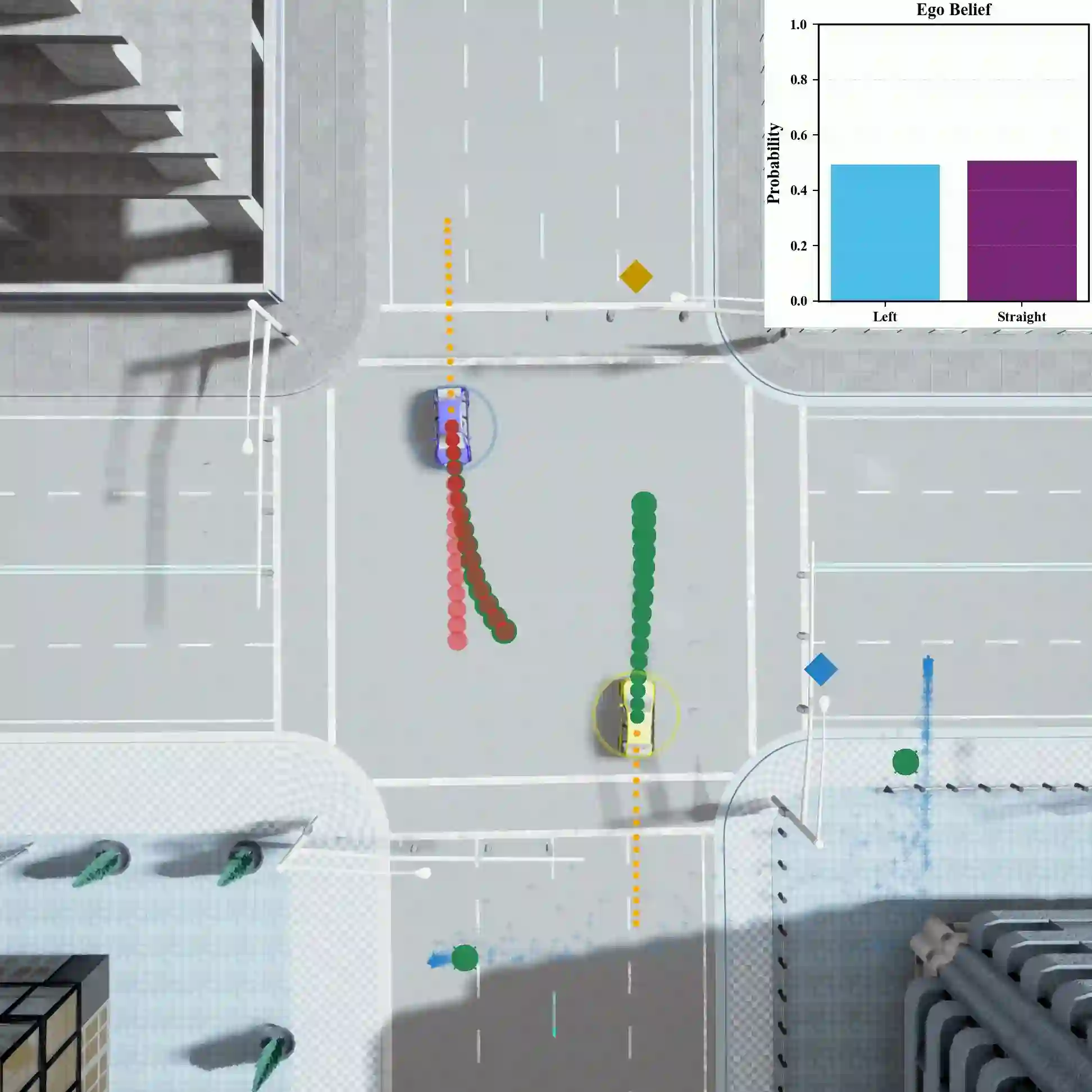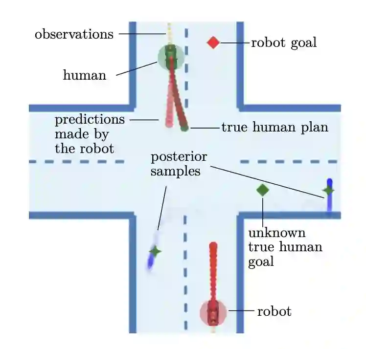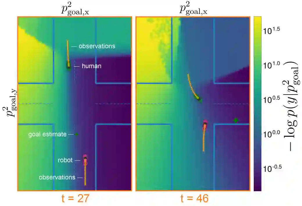 翻译:许多多智能体交互场景可自然地建模为非合作博弈,其中每个智能体的决策均依赖于其他智能体的未来行为。然而,为自主决策部署博弈论规划器需要明确所有智能体的目标函数。为规避这一实际困难,近期研究发展了基于最大似然估计的逆博弈求解技术,能够从交互数据中识别未知的智能体目标。遗憾的是,这些方法仅能推断点估计值,无法量化估计器的不确定性;相应地,下游规划决策可能因过度自信而采取不安全行动。本文提出一种近似贝叶斯推断方法用于求解逆博弈问题,该方法能够融合多模态观测数据,并可在给定有限实时传感器观测的条件下,从隐藏智能体目标的贝叶斯后验分布中生成样本。具体而言,所提出的贝叶斯逆博弈框架在交互数据集上训练具有嵌入式可微分纳什博弈求解器的结构化变分自编码器,且无需标注智能体的真实目标函数。大量实验表明,我们的框架成功学习了先验与后验分布,相比基于最大似然估计的逆博弈方法提升了推断质量,并在保持效率的同时实现了更安全的下游决策。当轨迹信息不具信息性或不可获取时,多模态推断通过利用额外观测模态进一步降低了不确定性。