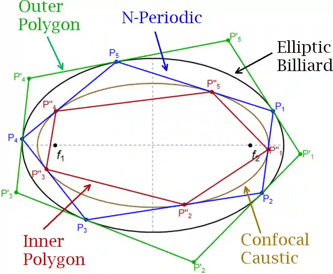 翻译:我们研究在椭圆面板上的自相交叉的N周期,描述有关其几何学的新事实(例如,自相交叉的4周期有与foci相融合的脊椎)。我们还检查“Elliptic Billiard(2020年)中N-Periodics的8-新变异物”(arxiv:2004.12497)中列出的一些变异物是否在自相交叉的案例中始终没有变化。为此,我们为许多低N简单、自相交叉的病例得出了明确的表达方式。我们找出了两种特殊案例(一个简单、一个自我交叉的),在这些特殊案例中,规定在自相交叉的病例中,一定数量是变化不定的。