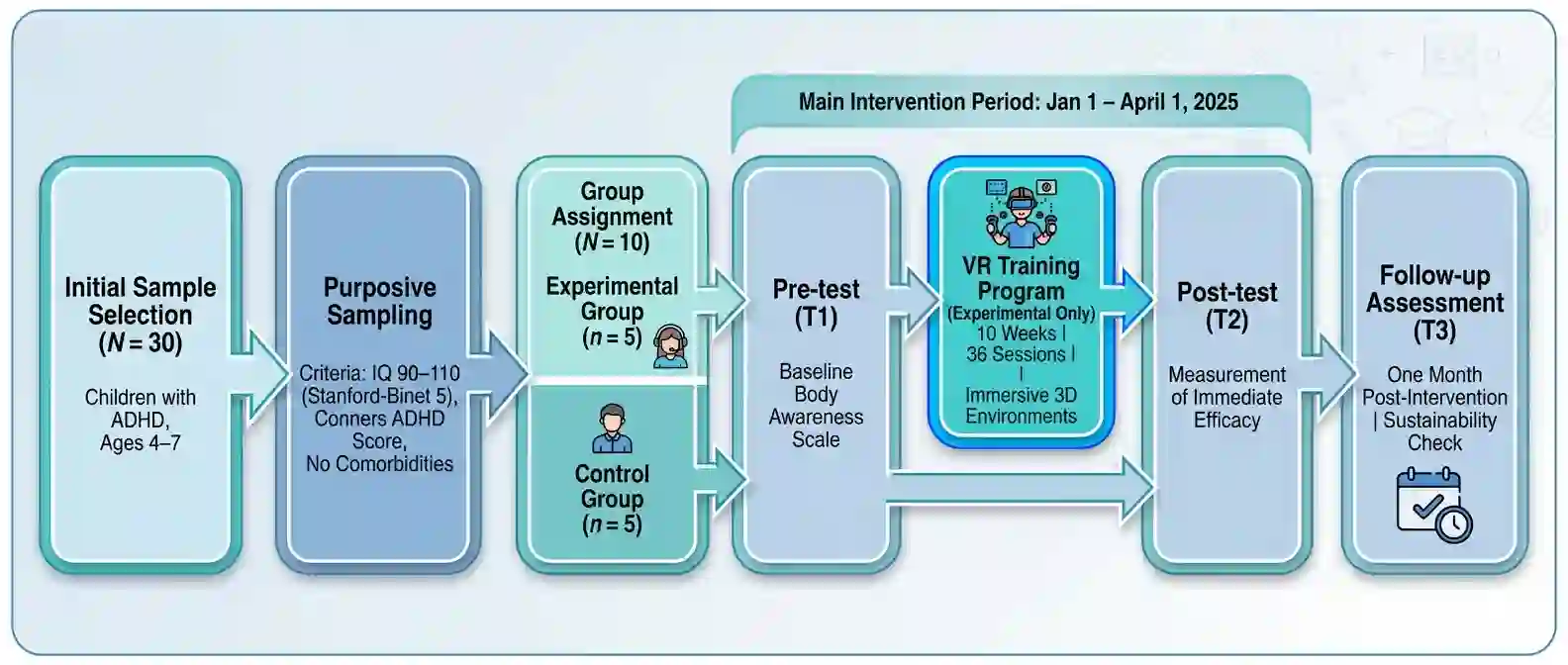 翻译:本研究探讨了基于虚拟现实(VR)的训练计划在改善注意力缺陷多动障碍(ADHD)儿童身体意识方面的有效性。研究采用准实验设计,样本包括10名年龄在4至7岁之间、智商分数在90至110之间的儿童。参与者被分为实验组和对照组,实验组接受了为期三个月、总计36次的结构化VR干预。评估工具包括斯坦福-比奈智力量表(第五版)、Conners ADHD测试以及研究者自编的身体意识量表。结果显示,实验组的前测与后测分数之间存在统计学上的显著差异,表明该计划在提升空间意识、身体部位识别和运动表达方面具有显著效果。此外,干预结束一个月后进行的随访评估显示,其结果与后测结果无显著差异,证实了该计划效果的持续性和稳定性。研究结果表明,沉浸式VR环境为应对儿童早期ADHD的心理运动缺陷提供了一种安全、引人入胜且有效的治疗媒介。