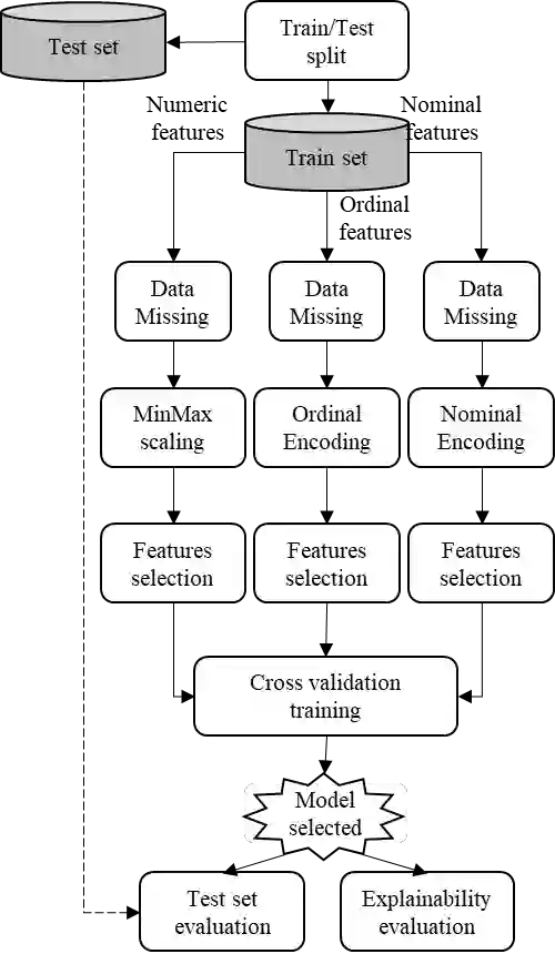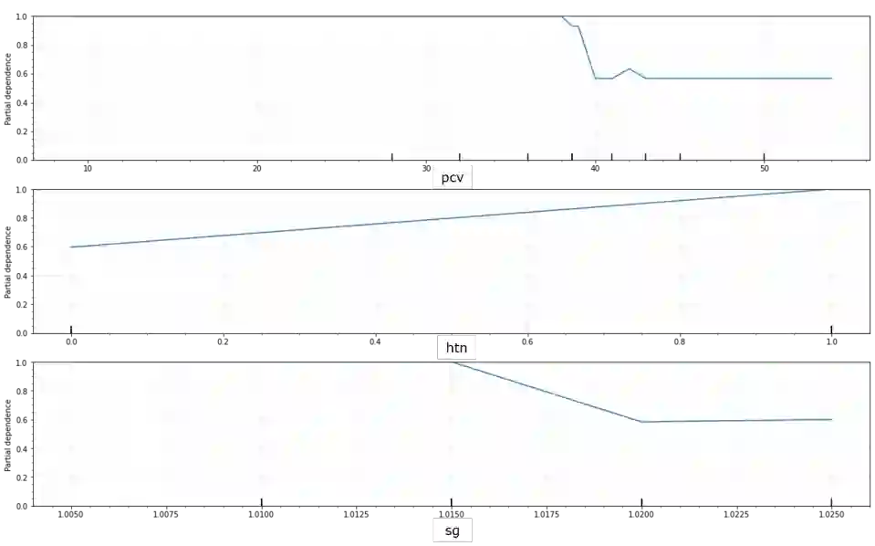 翻译:延迟识别意味着过早死亡的慢性肾脏疾病(CKD),延迟识别意味着过早死亡,目前正在经历一种全球范围的发病率上升和卫生系统成本高昂的慢性肾脏疾病(CKD),数据挖掘使得发现CKD指标的微妙模式有助于早期诊断;这项工作提出开发和评价一个可解释的预测模型,支持临床医生早期诊断CKD病人;模型开发的基础是一个数据管理管道,该管道检测混合树木算法和分类性能所选特征的最佳组合;此外,文件的主要贡献涉及一种解释性驱动方法,该方法能够选择保持准确性和可解释性之间的平衡的最佳预测模型。因此,最平衡的可解释性预测模型采用一种极端梯度梯度,将分类器加速到3个特征(包装细胞值、具体重力和高血压)上,从而分别实现99.2%和97.5%的精确度,与交叉校验技术和新的隐蔽数据相匹配。此外,对模型的解释表明,包装细胞价值是影响模型预测结果的最相关特征,随后是具体的重力和高压。因此,最平衡的预测性可解释性可解释性模型模型模型模型含有极小的特性,用于低的早期诊断结果。