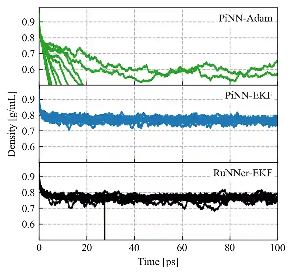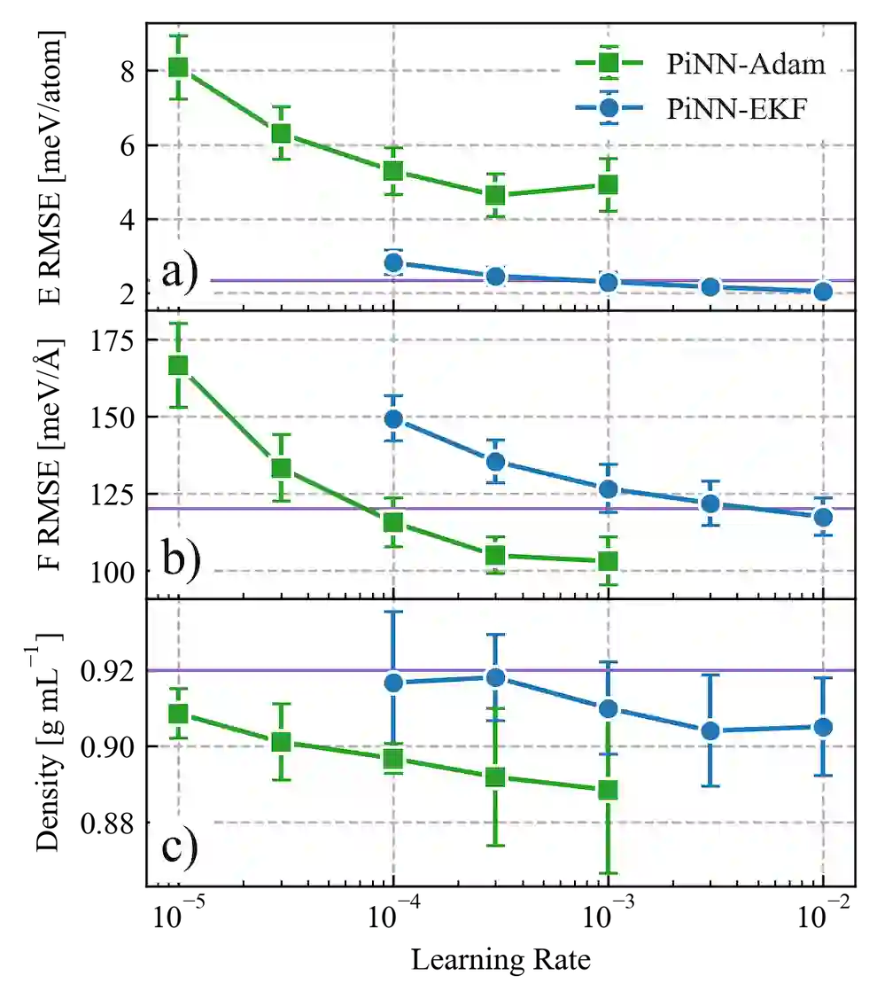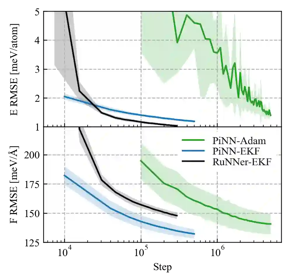 翻译:开发神经网络潜力(NNPs)的一个隐藏但重要的问题是培训算法的选择。 我们在这里比较两种通用培训算法的性能,即适应性瞬间估计算法(Adam)和延长的卡尔曼过滤算法(EKF),使用Behler-Parrinello神经网络(BPNN)和两个可公开查阅的液体水数据集,发现与Adam相比,接受过EKF培训的NNPs更具有可转移性,对学习率值的敏感度更低。 在这两种情况下,测试组的误差指标并不总是作为NNPs实际性能的良好指标。 相反,我们表明其性能与基于渔业信息的类似性衡量标准密切相关。