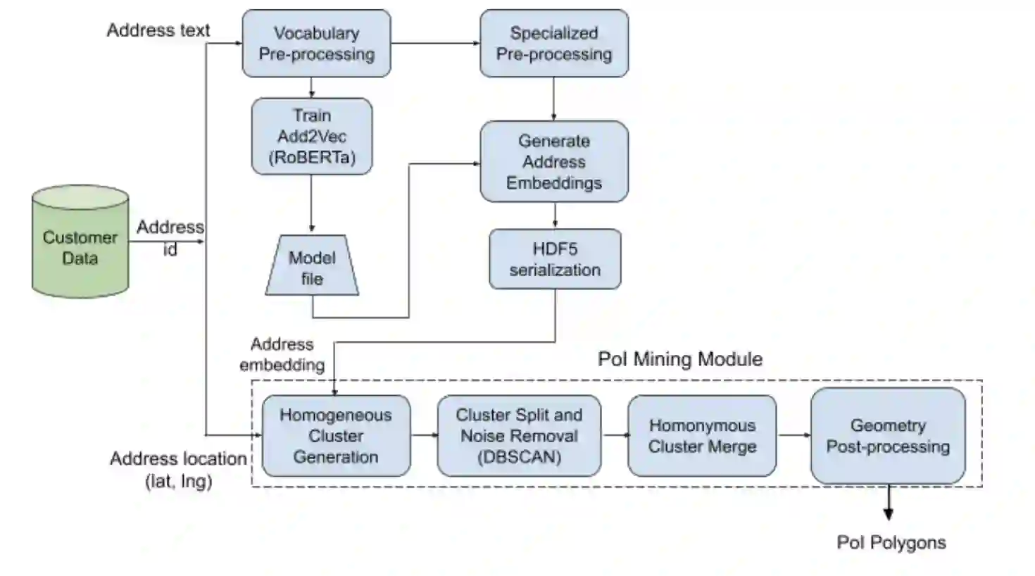 翻译:在全球各地,通常使用数字地图来探索用户感兴趣的地方,通常称之为感兴趣的地点。在在线食品交付平台上,POI可以代表客户可以从医院、住宅综合体、办公综合体、教育研究所和旅舍等单位订购的任何大型私人化合物。在这项工作中,我们提议采用一个端到端不受监督的系统设计,以获取地址和地址文本的PoI(PoI多边形)多边图的多边图。我们使用地点名称预处理地址文本,并使用一个深层次学习基础结构(即RoBERTA)生成地址文本的嵌入。在我们的内部内部地址数据库中,我们受过培训的就是RoBERTA。POII可以将匿名客户电话GP地点(在登机时安装)和地址文本的嵌入。这些POII(POI)多边边框的最后清单是使用新式后处理步骤从这些POI候选人那里获取的。这个算法比在内部数据库中运行的Mumidi-Krum基线算法要多74.8%。在内部数据库中,使用O-revalalal-rickal O-rass O-rassal 数据库中,使用O-rma 中,使用O-rma 的中的一个中位的中位的中位区域,从一个中将一个中位的中位数,用一个中位数区域,从98的中位。