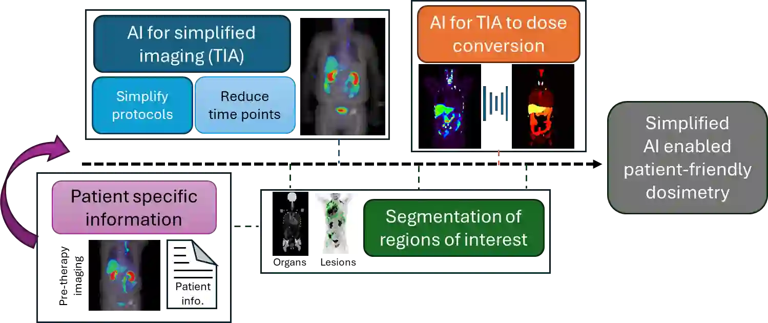 翻译:关键词:人工智能(AI),诊疗一体化,剂量学,放射性药物疗法(RPT),患者友好型剂量学 要点 - 放射性药物疗法(RPT)的快速发展突显了对个性化及以患者为中心的剂量学日益增长的需求。 - 人工智能(AI)为当前剂量学计算中的关键局限性提供了解决方案。 - 本文综述了为实现患者友好的RPT,AI在简化剂量学方面的主要进展。 - 探讨了AI在RPT剂量学中作用的未来方向。