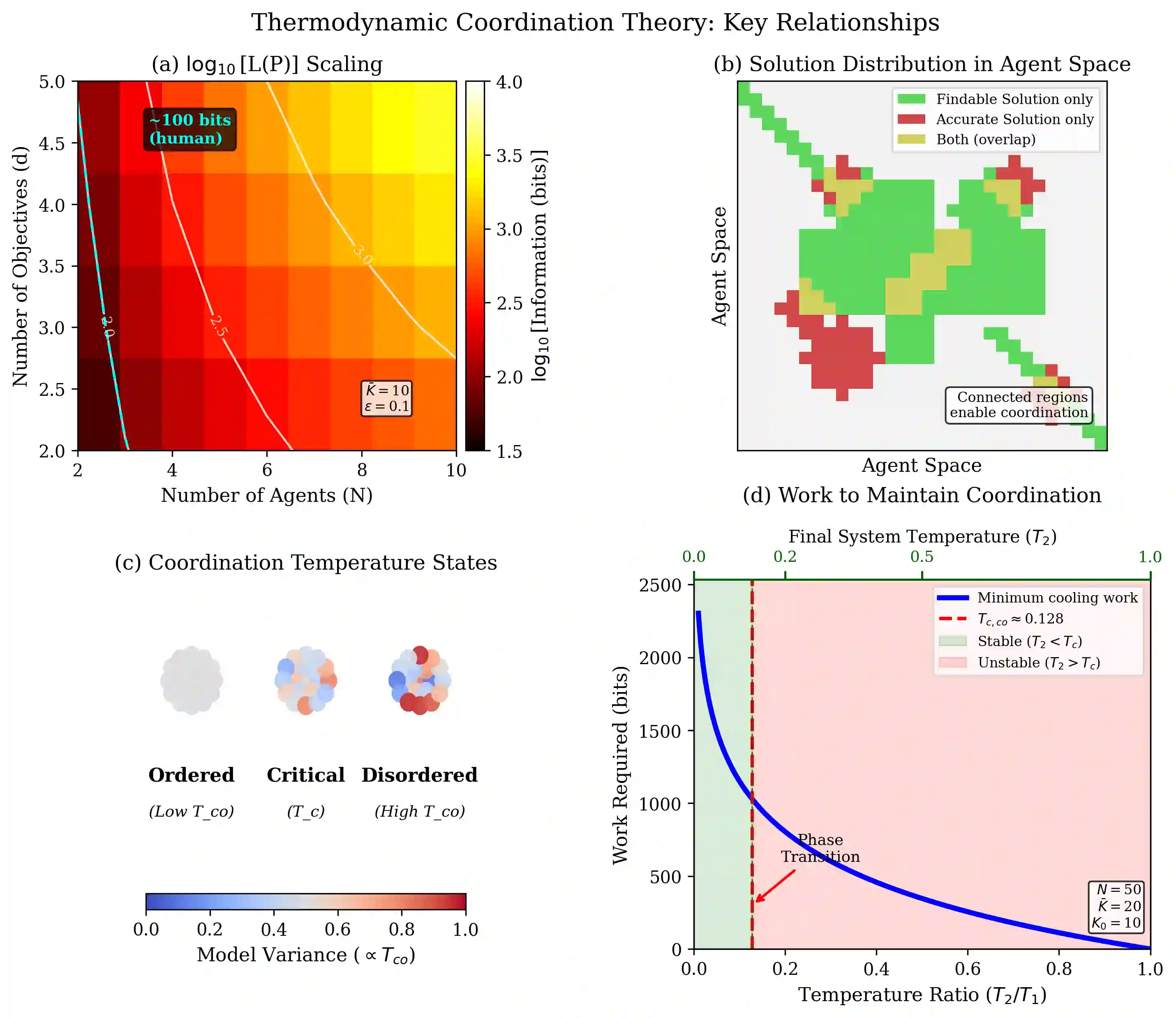 翻译:协调多智能体与多目标的信息处理系统面临着基本的热力学约束。我们证明,作为协调焦点且具有最大效用的解,其在不同智能体间的可发现性(而非精确性)承受着更强的选择压力。我们推导出,对于具有$d$个潜在冲突目标且内部模型复杂度为$K$的$N$个智能体,协调协议达到精度$\varepsilon$所需的信息论最小描述长度按$L(P)\geq NK\log_2 K+N^2d^2\log (1/\varepsilon)$缩放。这种缩放迫使系统进行渐进简化,协调动力学本身改变环境,并在层级间转移优化过程。从已建立的焦点转移需要重新协调,从而产生持续的亚稳态和滞后现象,直到显著的环境变化通过自发对称性破缺触发相变。我们操作性地定义了协调温度以预测临界现象并估算协调工作成本,识别从神经网络到餐厅账单再到官僚机构等各类系统中可测量的特征。通过扩展阿罗不可能性定理的拓扑版本(关于一致偏好聚合的不可能性),我们发现每当偏好被组合时,该定理便递归地产生约束。这或许可以解释多目标梯度下降中的无限循环,以及通过人类反馈强化学习训练的大型语言模型中的对齐伪装现象。我们将此框架称为热力学协调理论,它论证了协调必然导致根本性的信息损失。
