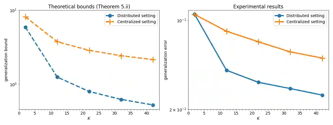 翻译:在本文中,我们使用调试率理论的工具来为统计分布式学习算法的普及错误设定新的上限。 具体地说, 有K美元客户的客户个人选择的模型由中央服务器汇总。 这些界限取决于每个客户的算法的压缩, 同时保持其他客户的算法不受压缩, 并充分利用以下事实,即每个本地模型的微小变化仅以1/ K$的系数改变综合模型。 采用Sefidgaran 等人最近提出的一种方法, 并将其扩展为适合分布式设置, 这样可以使较小的调试率术语被显示为更紧凑的通用界限。 这些界限随后被应用到分布式的辅助矢量机( SVM), 这表明分布式设置的普遍误差比集中式的差快, 系数为$\mathcal{O} (\log (K)/\qrt{K} 。 这一发现也得到实验性验证。 每个客户都使用渐变的梯状学习设置, 获得类似的结论。