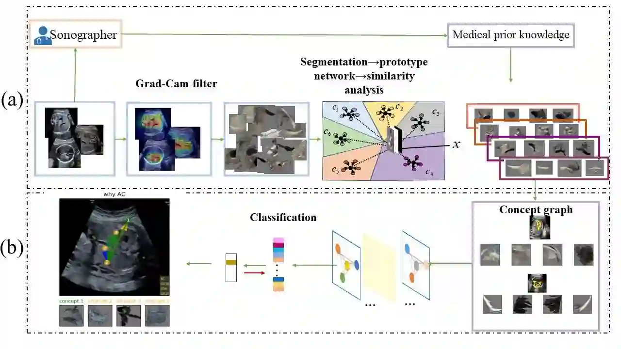 翻译:尽管深度神经网络(DNN)在不同领域取得了最先进的性能,但在神经网络中经常发现一些出乎意料的错误,这对一些需要高度可靠和高度安全的任务非常危险。进化神经网络(CNN)的不透明和不可解释性仍然限制其在许多领域的应用,如医疗和财务等。尽管目前致力于直观DNN决策过程的研究,但这些方法大多侧重于低水平,没有考虑到以前对医学的了解。在这项工作中,我们提出了一个基于关键医学概念的可解释框架,使CNN能够从医生认知的角度解释。我们提议了一个超声波标准平面可解释的自动识别框架,它使用基于概念的图形神经网络来构建关键医学概念之间的关系,以获得与医生认知一致的解释。广泛的实验从经验上表明,我们的模型可以有意义地解释分类师的决定并提供定量支持。